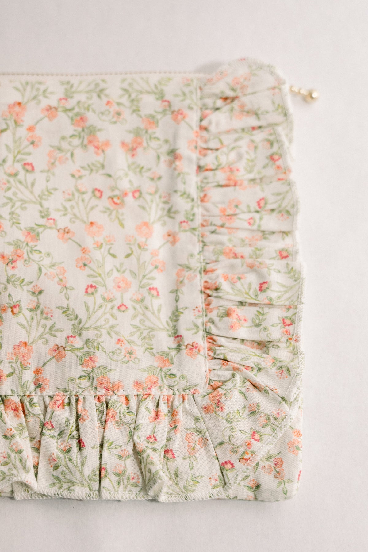 Apricot Meadow |Timeless Floral Ruffle Zipper Pouch
