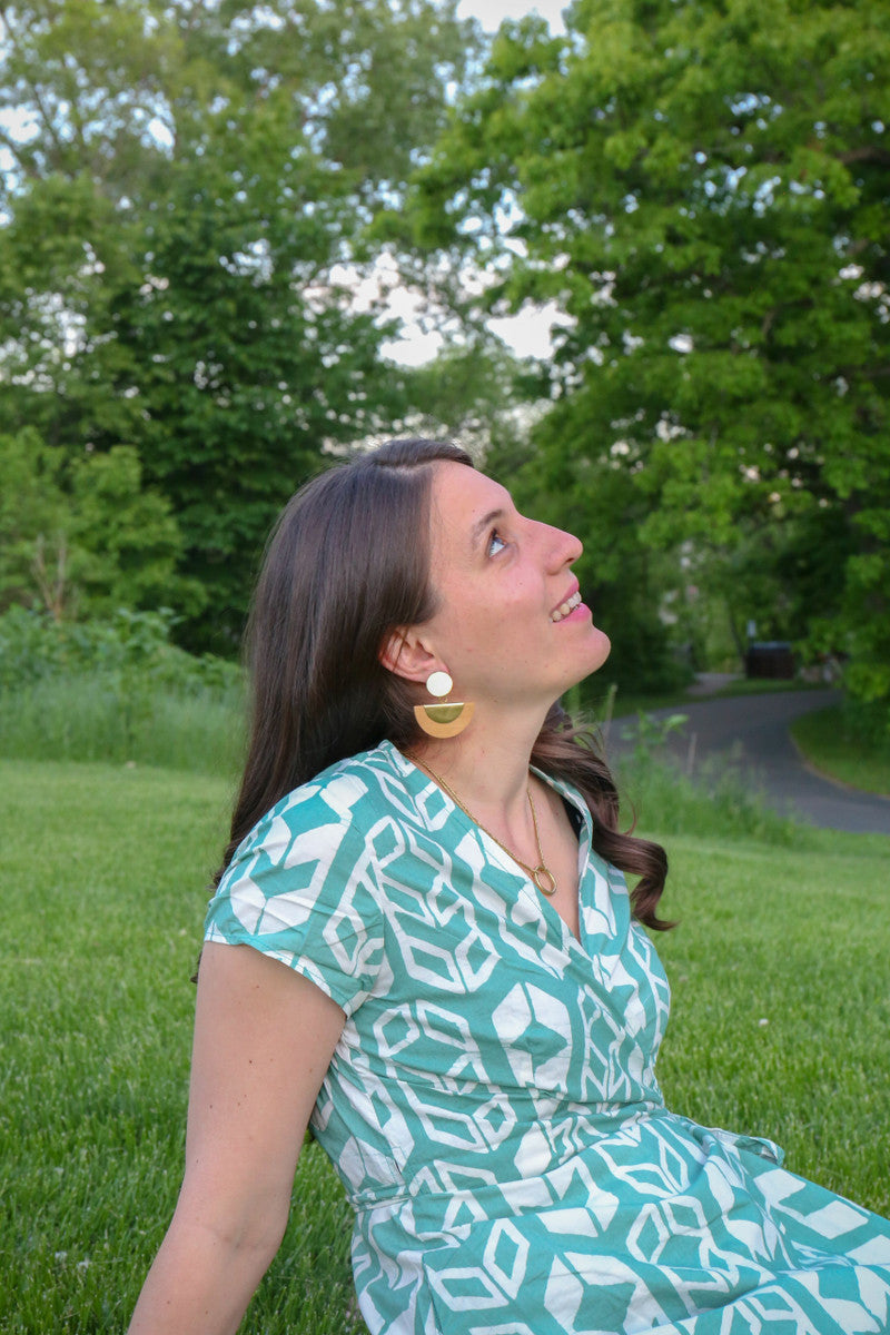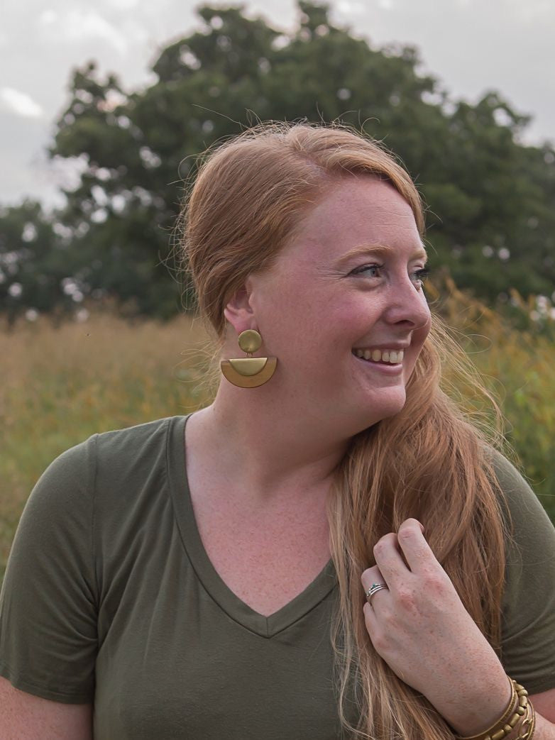 For a timeless look, these art deco half moon earrings are perfect. Wood and brass in these earrings compliment each other beautifully making these studs the perfect for vintage inspired look.