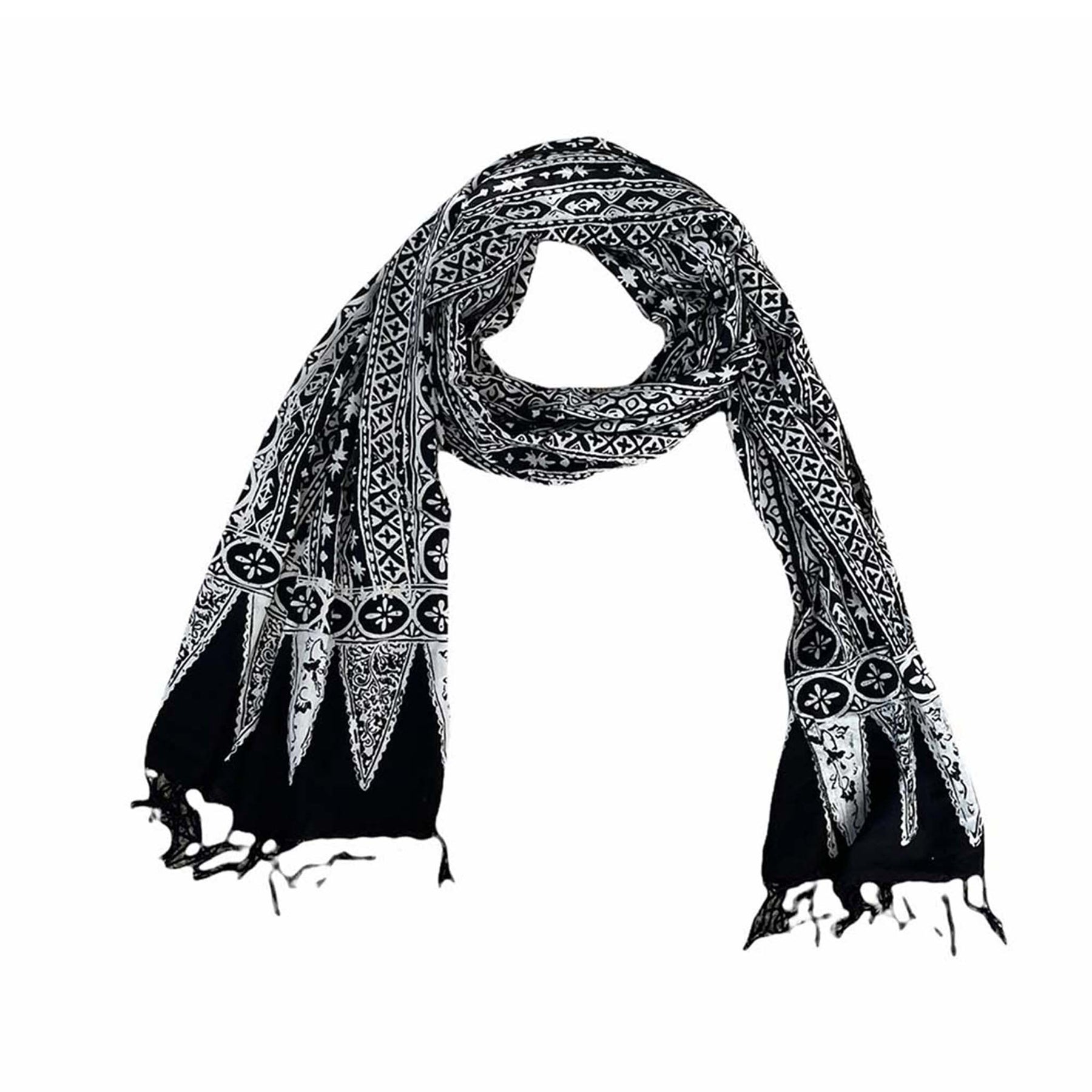 Hand Dyed Batik Scarf | 100% Cotton Fabric | Black & White, Geometric
