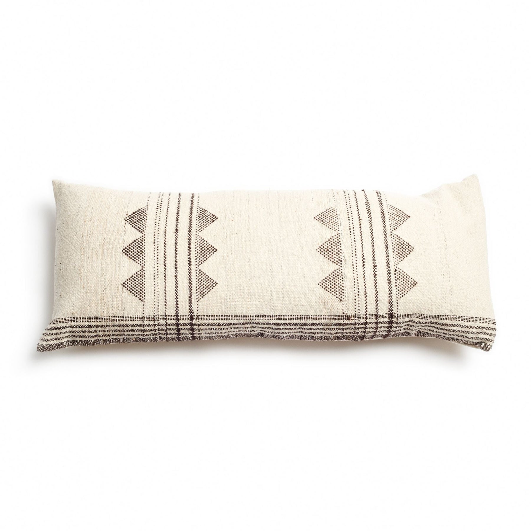 Kora White And Black Large Artisanal Handwoven Lumbar Pillow