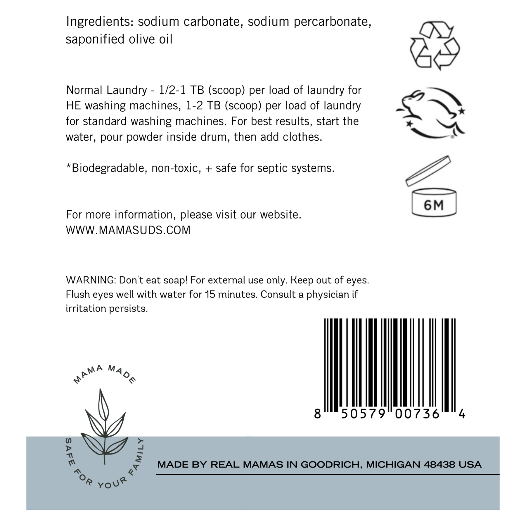 Effective Cleaning Power: Added sodium percarbonate (oxygen powder) boosts the effectiveness of this powdered formula, even over our original liquid recipe! With its gentle ingredients, MamaSuds doesn't compromise on performance. It tackles tough stains and odors, leaving your laundry fresh, clean, and free from residue.