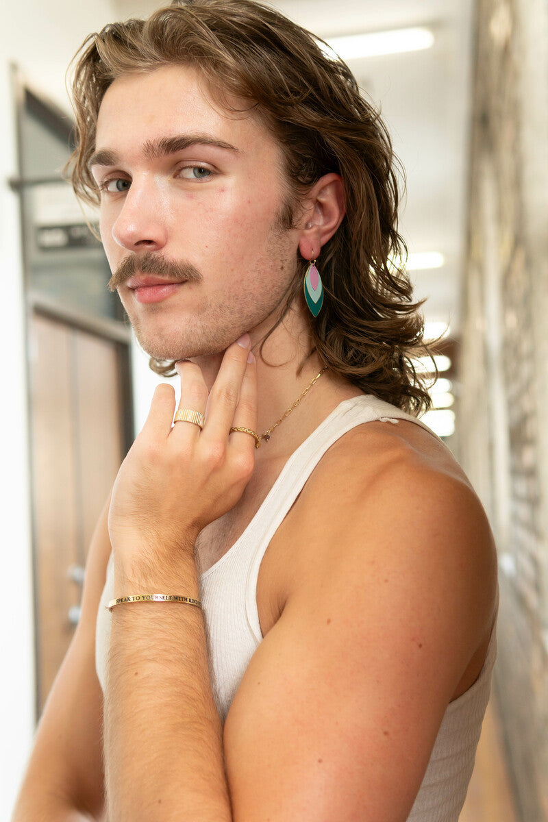Made from brass-plated recycled metal. Nickel-free. Measures 2.5" long.