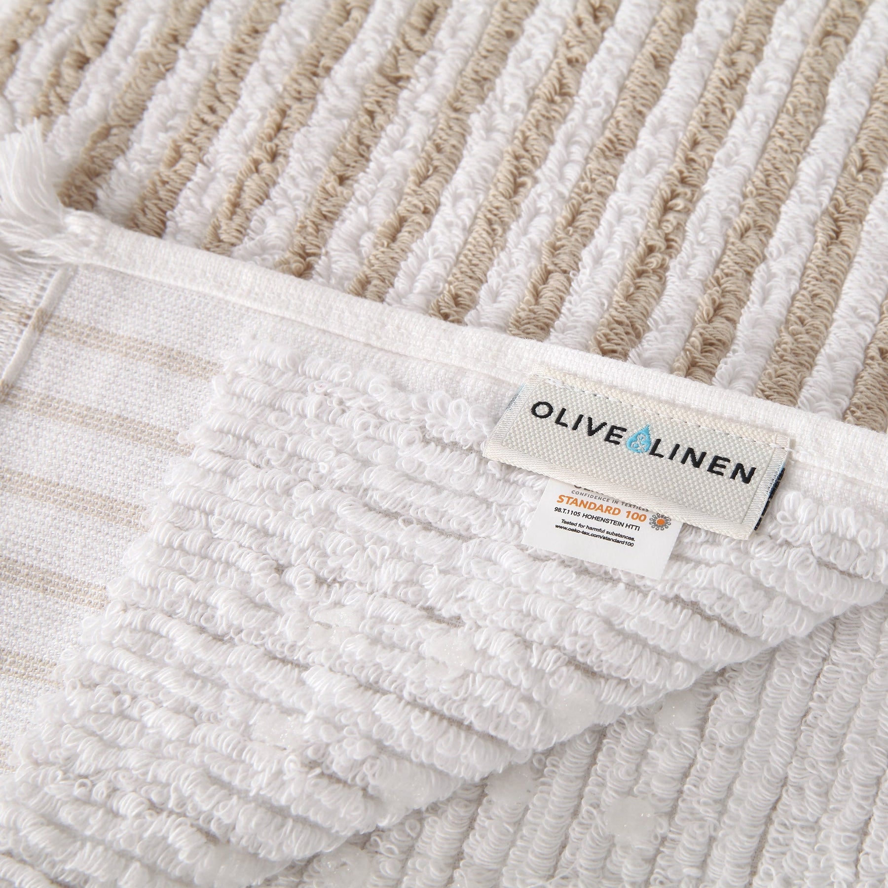 Olive & Linen's Stripes Bath Mat is expertly crafted with intricate details from the finest long-staple Turkish cotton. Soft under foot and super absorbent, this mat adds a worldly charm to any bathroom.