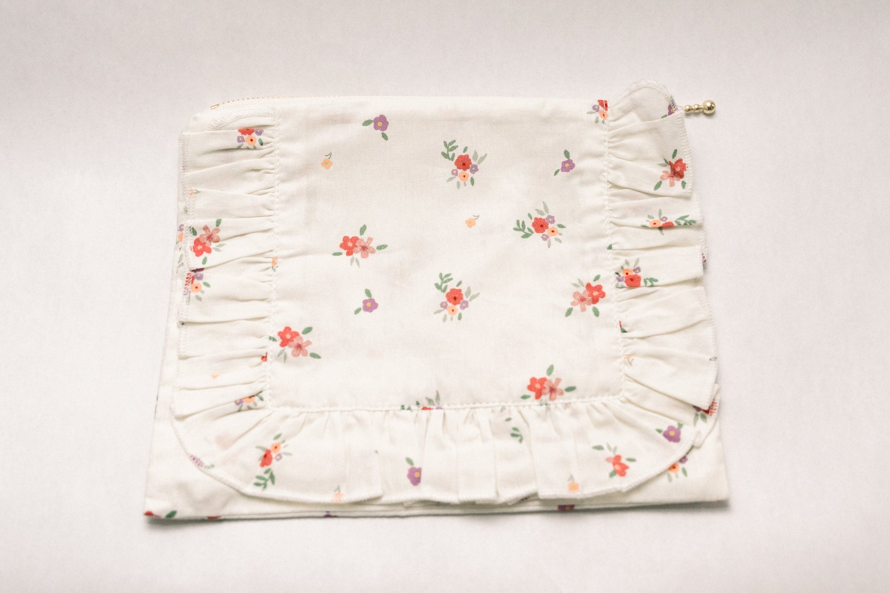 Summer Petals-Timeless charm meets everyday function in this sweet, vintage-inspired zippered pouch. Made from soft cotton fabric with a delicate floral print, this pouch features romantic ruffle edging and a smooth brass zipper closure. Perfectly sized for keeping little treasures, pacifiers, hair bows, or mama essentials neatly tucked away. Whether you’re tossing it in your diaper bag or using it to store keepsakes, this pouch brings a soft touch of nostalgia and beauty to your day. Thoughtfully handcrafted with care, because even the smallest details should feel special. Dimension: “9.06 x 7.09” Fabric Content: Main Fabric: 100% Recycled Cotton Lining: 100% Recycled Cotton Looking for more floral styles? Explore the full Timeless Floral Ruffle Zipper Pouch Collection more than 20 unique prints, all made from recycled