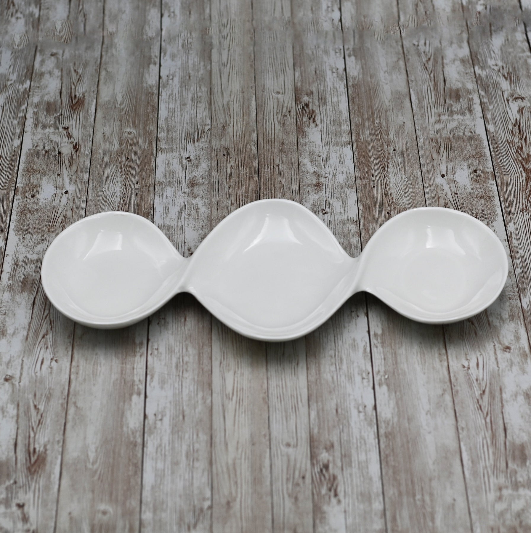White Divided Sauce Dish 14.5" inch | 37 Cm