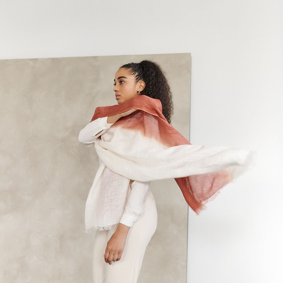 Pecan Brown Ombre Dyed Hand Woven Linen Scarf