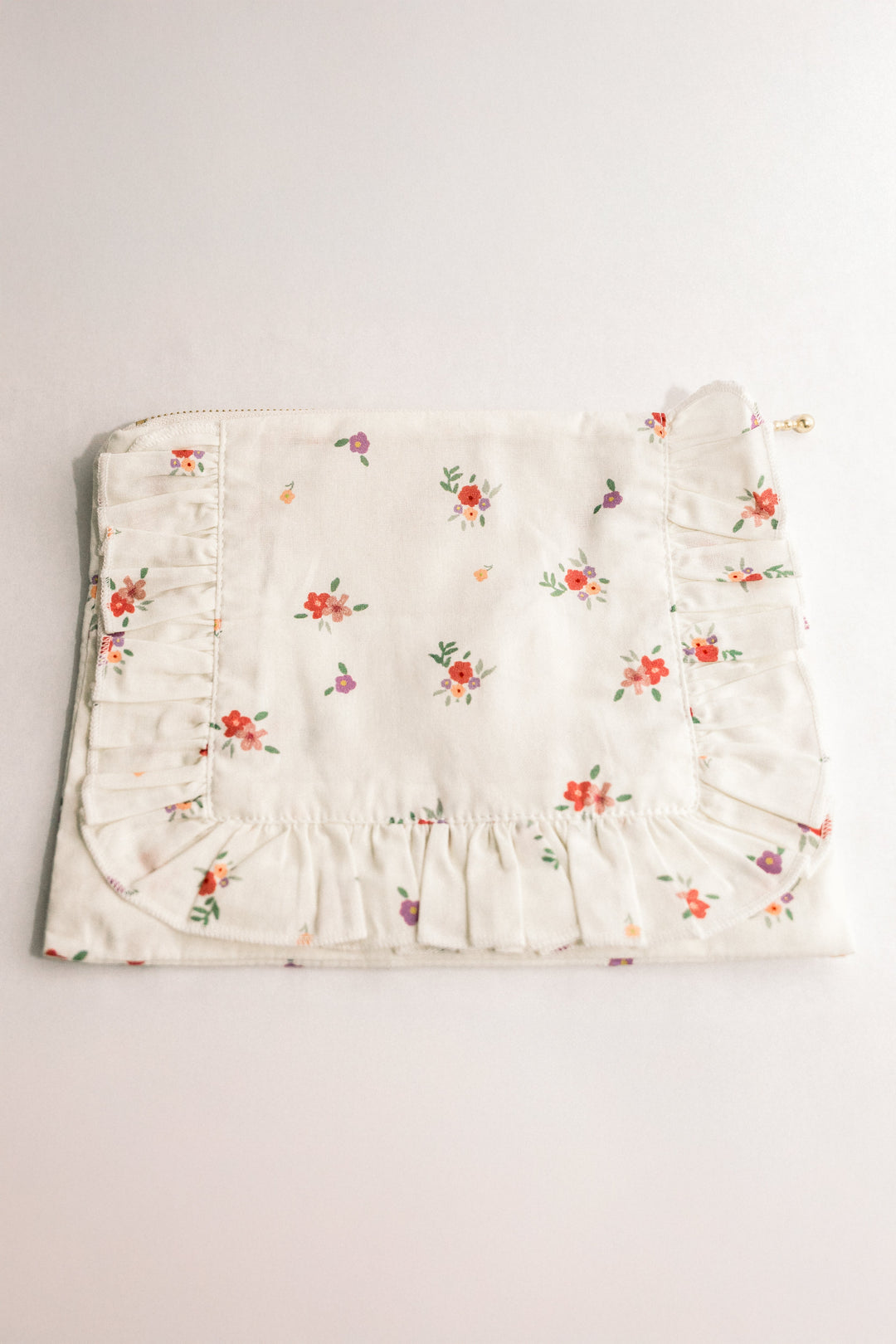 Wildflower Waltz | Timeless Floral Ruffle Zipper Pouch