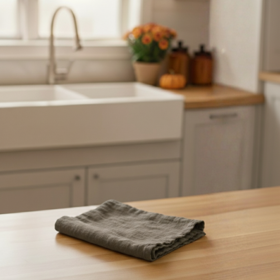 Stone Washed Linen Tea Towel - Each of these kitchen towels are ethically crafted by hand in India from the finest European flax and take hours to make using traditional hand looms.