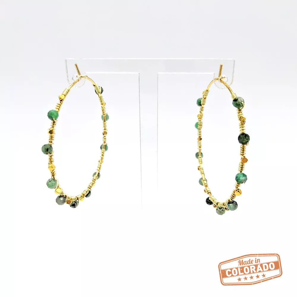 Eternal Youth Emerald Hoops Hypoallergenic stainless steel 18K gold plated hoops