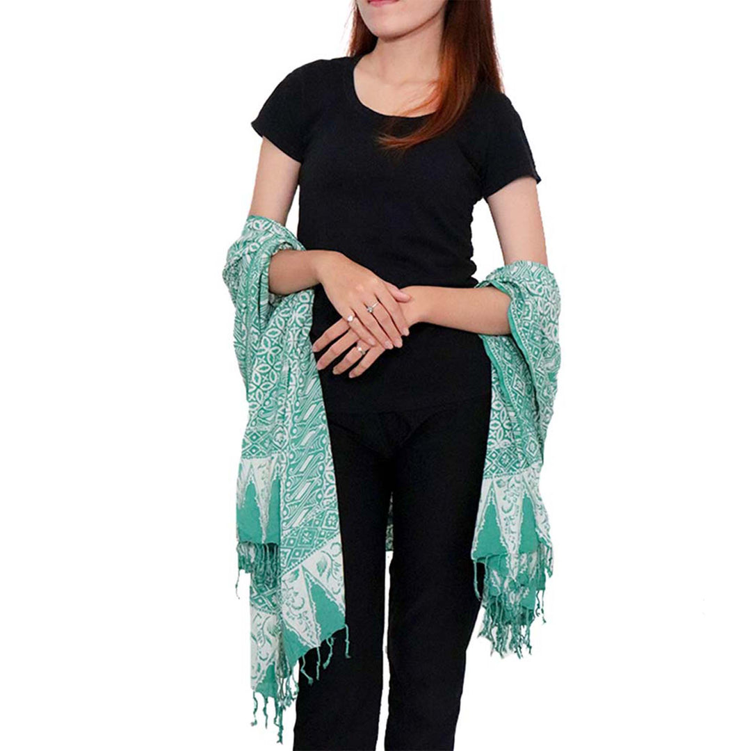Batik Shawl Sarong Wrap, Green Royalty, Hand Dyed, 100% Cotton