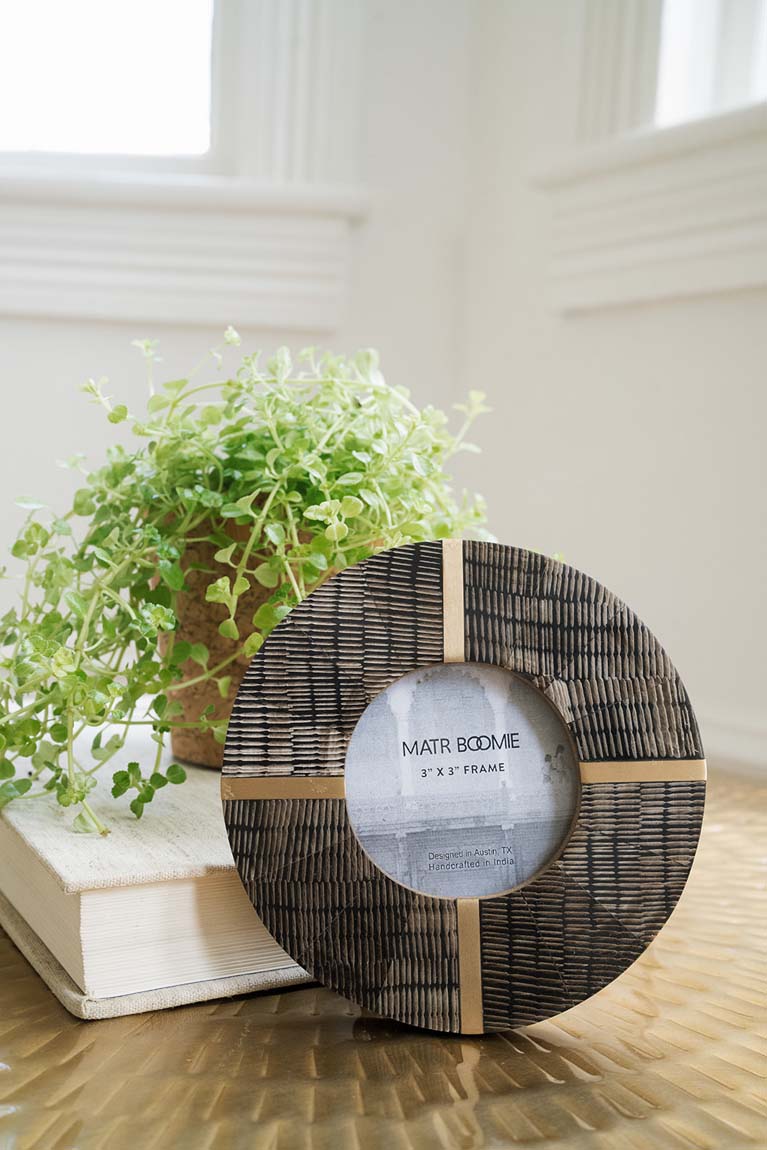 Kerala 3x3 Picture Frame - Carved Horn, Brass Inlay