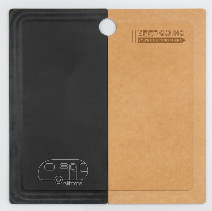 Camper Series Sink Cover & Prep Board for Airstream & RVs Perfectly fitted for 2021-and-newer Airstream Flying Cloud or International models featuring a square sink Choose From Three Unique Adventure-Inspired Designs ๐ŸŒ๐Ÿ•๏ธ Make your RV kitchen truly your own with one of these beautifully engraved options: โœ” "Oh Darling, Let's Be Adventurers" โ€“ Celebrate your love for the open road and new experiences. โœ” "Life is Better in a Camper" โ€“ Because nothing beats the joy of life on the road. โœ” "Keep Going, You Are Getting There" โ€“ A daily reminder to embrace the journey and enjoy every mile. These unique designs add a personalized touch to your Airstream kitchen while making this prep board a conversation starter at every stop. Custom Fit & Multi-Functional Design Upgrade your RV kitchen with this 18" x 18" custom-fit sink cover, designed to maximize counter space while serving as a durable and versatile prep surface. Crafted from sustainable solid wood fiber, this board is built to last a lifetime while enhancing your kitchenโ€™s efficiency. Key Features: โœ” Reversible 2-in-1 Design โ€“ One side functions as a cutting board, while the reverse side serves as a pastry board with dimension ring guides for precise dough rolling. โœ” Juice Groove โ€“ Designed to catch liquids and crumbs, keeping your kitchen clean and tidy. โœ” Knife-Friendly Surface โ€“ Gentle on your knives, ensuring smooth slicing and dicing without dulling your blades. โœ” 100% Dishwasher Safe โ€“ Effortless cleaning for ultimate convenience. โœ” Lightweight & Sleek โ€“ Doubles as a charcuterie board, perfect for serving snacks, cheeses, and meats while entertaining. Two Stylish Options: ๐Ÿ”น 1/2 Sink Coverage โ€“ Allows continued faucet use while enabling easy food scrap disposal into the sink. ๐Ÿ”น Full Sink Coverage โ€“ Maximizes your workspace with seamless coverage, giving you extra counter space for food prep. Why Airstream Owners Love This Sink Cover We know from experience that every inch of galley space matters. This thoughtfully engineered cover instantly adds up to 324 square inches of functional prep area, transforming how you use your RV kitchen. Blending functionality and elegance, this eco-friendly prep board is perfect for: โœ” Slicing & prepping โœ” Entertaining & serving โœ” Rolling out dough โœ” Maximizing counter space in your Airstream or RV Whether you're on the road or parked at your favorite campsite, this versatile and stylish sink cover is the perfect addition to your travel kitchen. Why Choose the Camper Series Sink Cover & Prep Board? โœ” Custom-fit for Airstream & RV sinks โœ” Multi-functional 2-in-1 cutting & prep board โœ” Eco-friendly & sustainable materials โœ” Durable, lightweight & easy to clean โœ” Available in both ยฝ & full sink coverage options โœ” Personalized designs for every adventure lover Enhance your RV kitchen experience today with this premium sink cover & prep boardโ€”the perfect blend of style, function, and sustainability.