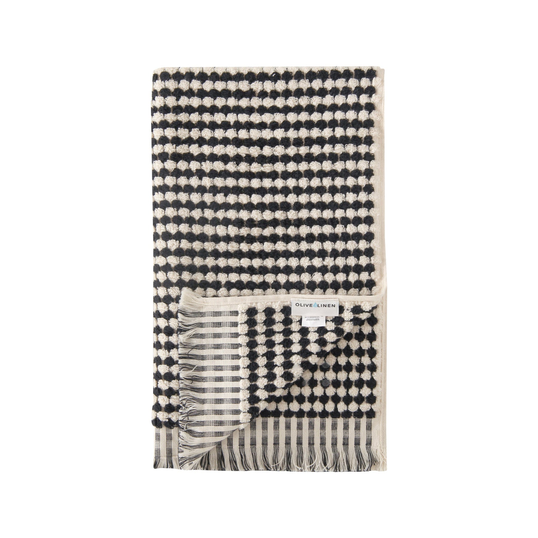 Olive & Linen's Dots Bath Mat is expertly crafted with intricate details from the finest long-staple Turkish cotton. Soft under foot and super absorbent, this mat adds a worldly charm to any bathroom.