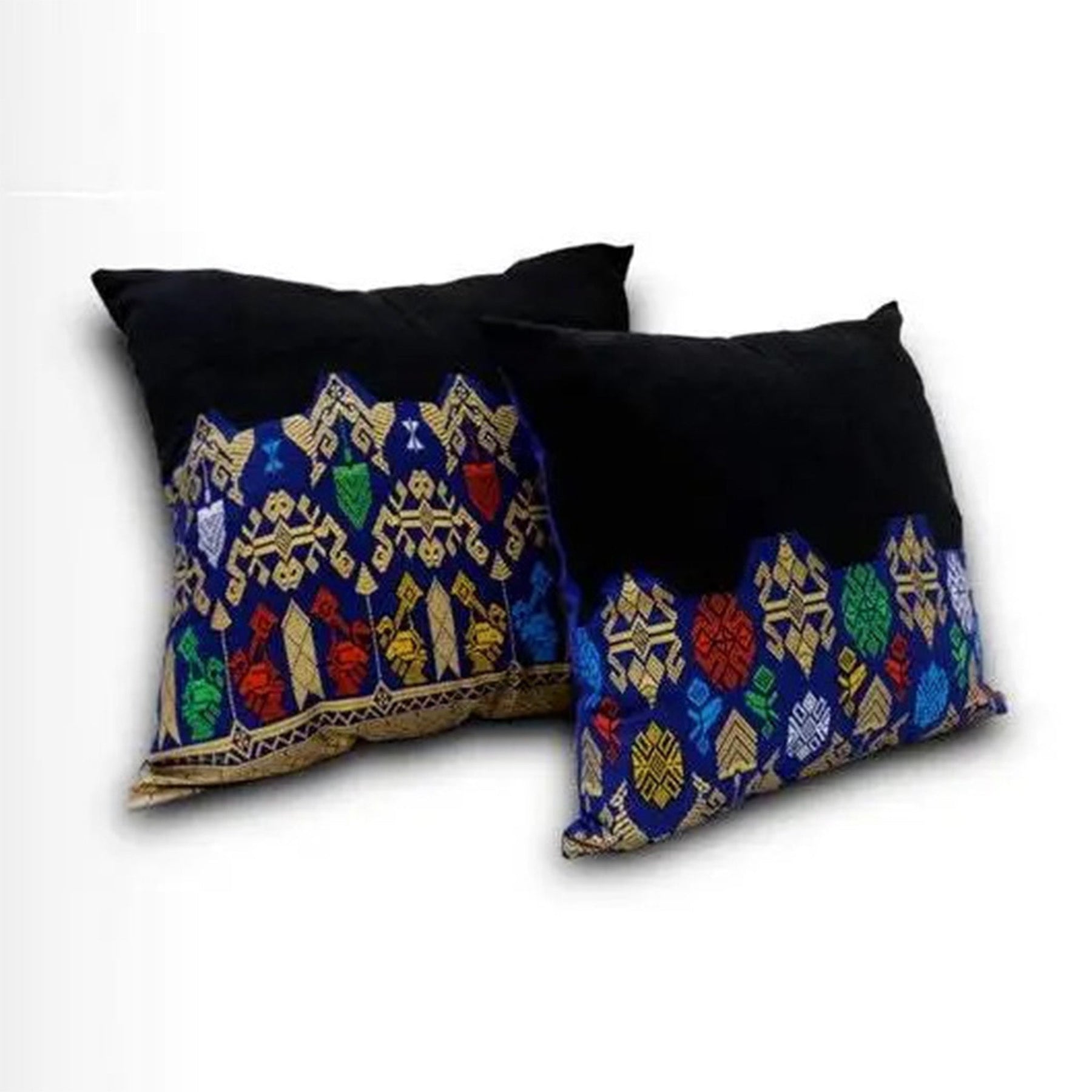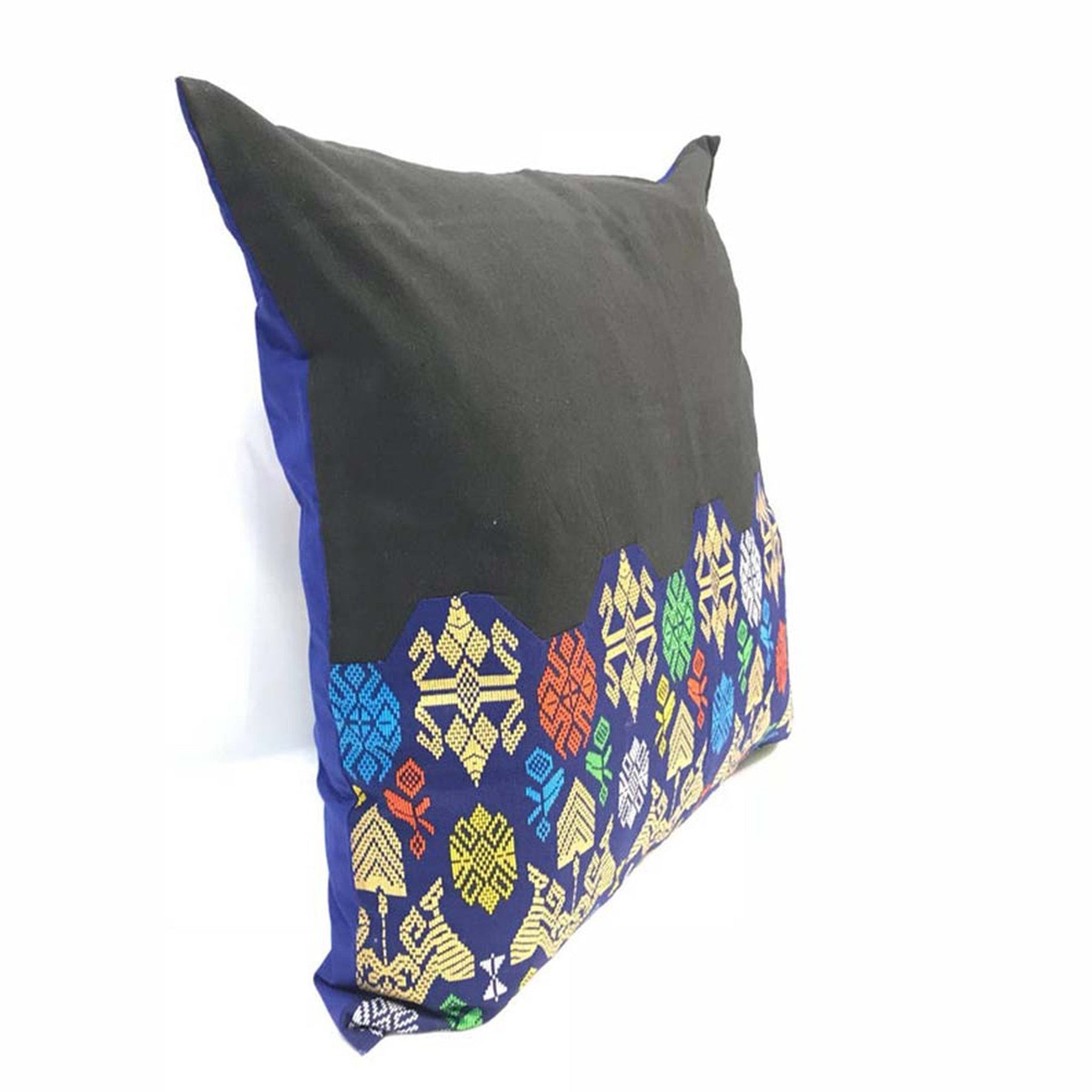 Handwoven Ikat Pillow Cover, Black and Blue. Cover Only with No Insert. 20" x 20", Cushion