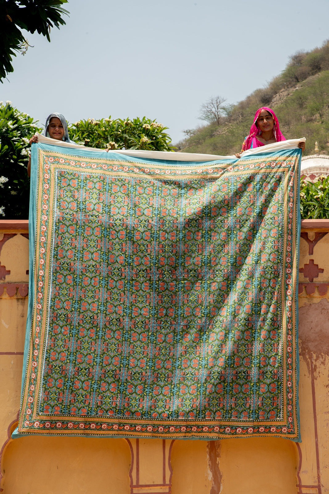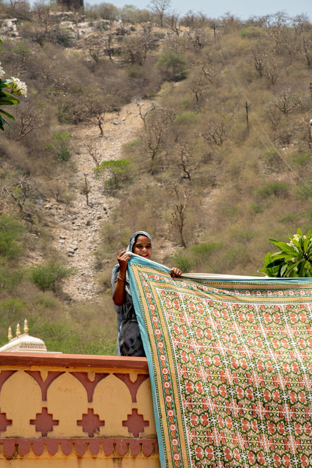 Each duvet cover is handmade, requiring attention from multiple artisans, including wood carvers, block printers, and dye specialists. The design is hand-pressed onto each duvet using hand-carved wooden blocks dipped in dyes. CQC LA's duvet covers are made in small batches. Due to the handcrafted nature of this item, expect slight variations in the appearance of each unique piece. - 100% Cotton - Button Closure - Reversible Design - Handmade in India - Ships from California - Queen Size: 92″ x 96″ | King Size: 96″ x 104″ | Shams Size: 26" x 26" - Machine wash on a gentle cycle and tumble dry or dry clean