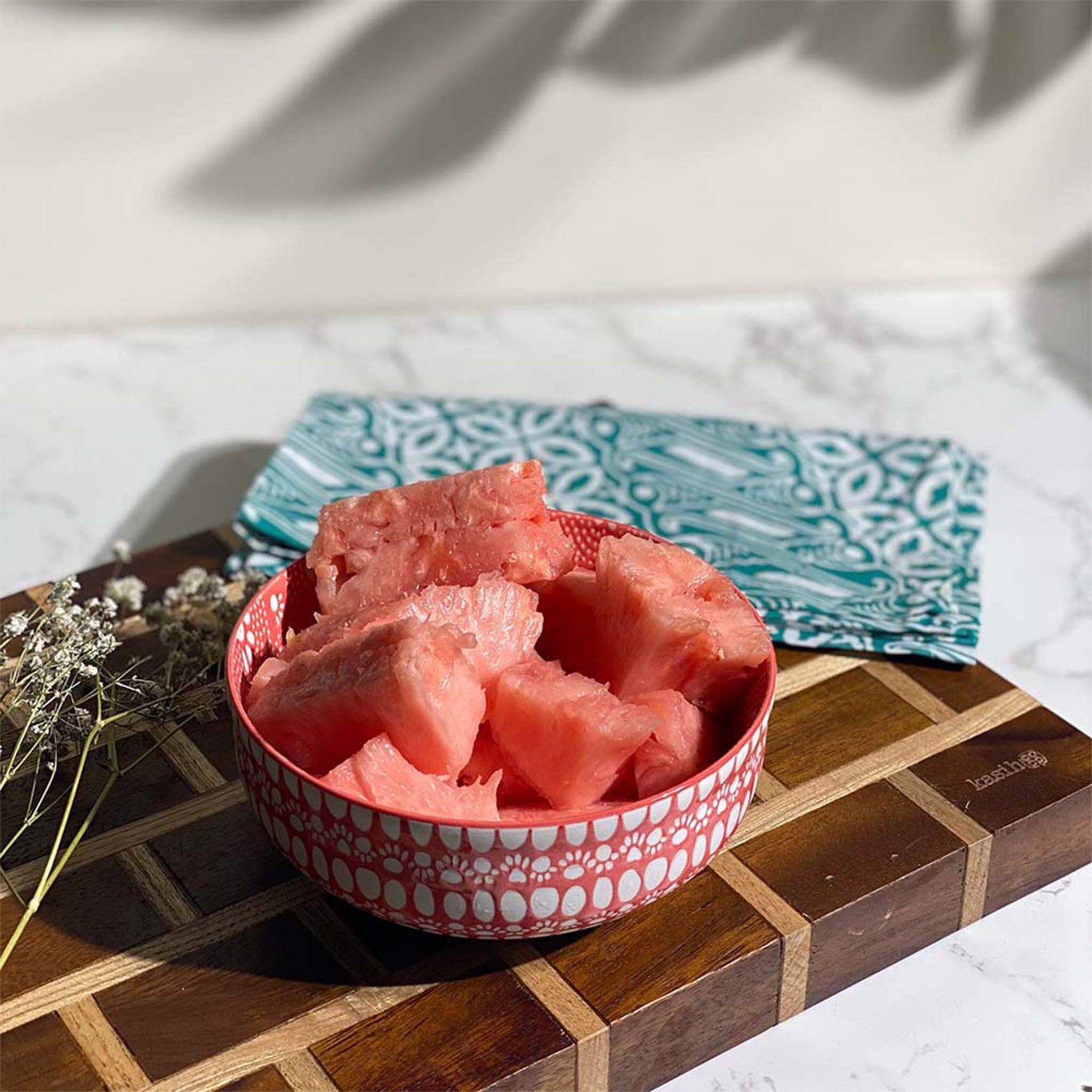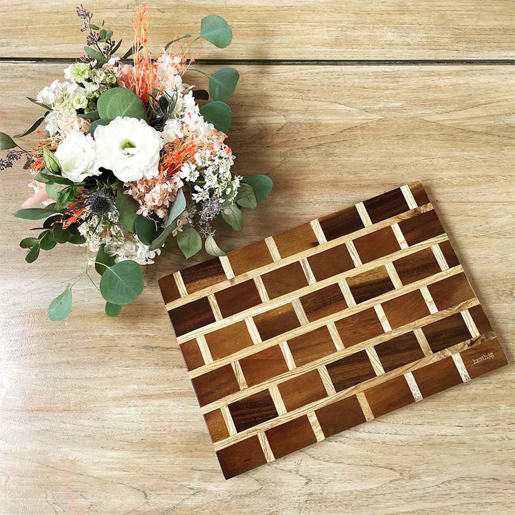 This is a FINAL SALE with NO RETURN, EXCHANGE or REFUND. This is a large suar and sungkai wood cutting board/ charcuterie board sourced from Indonesian government certified lumber producer. Size: 15x10.25x1" Made of suar and sungkai solid wood that was cut out to make a nice brown and light brown pattern Handmade by our artisans in Java Great for cutting board, charcuterie board, charcuterie plate, serving plate Great hostess gift Handwash with mild soap and dry immediately with towel Each cutting board is heavy and ~ over 3 lbs We source our wood from Indonesian government certified lumber producer, what is called SVLK (Surat Verifikasi Legal Kayu) in Indonesia. This ensures our goods do not come from illegal logging.