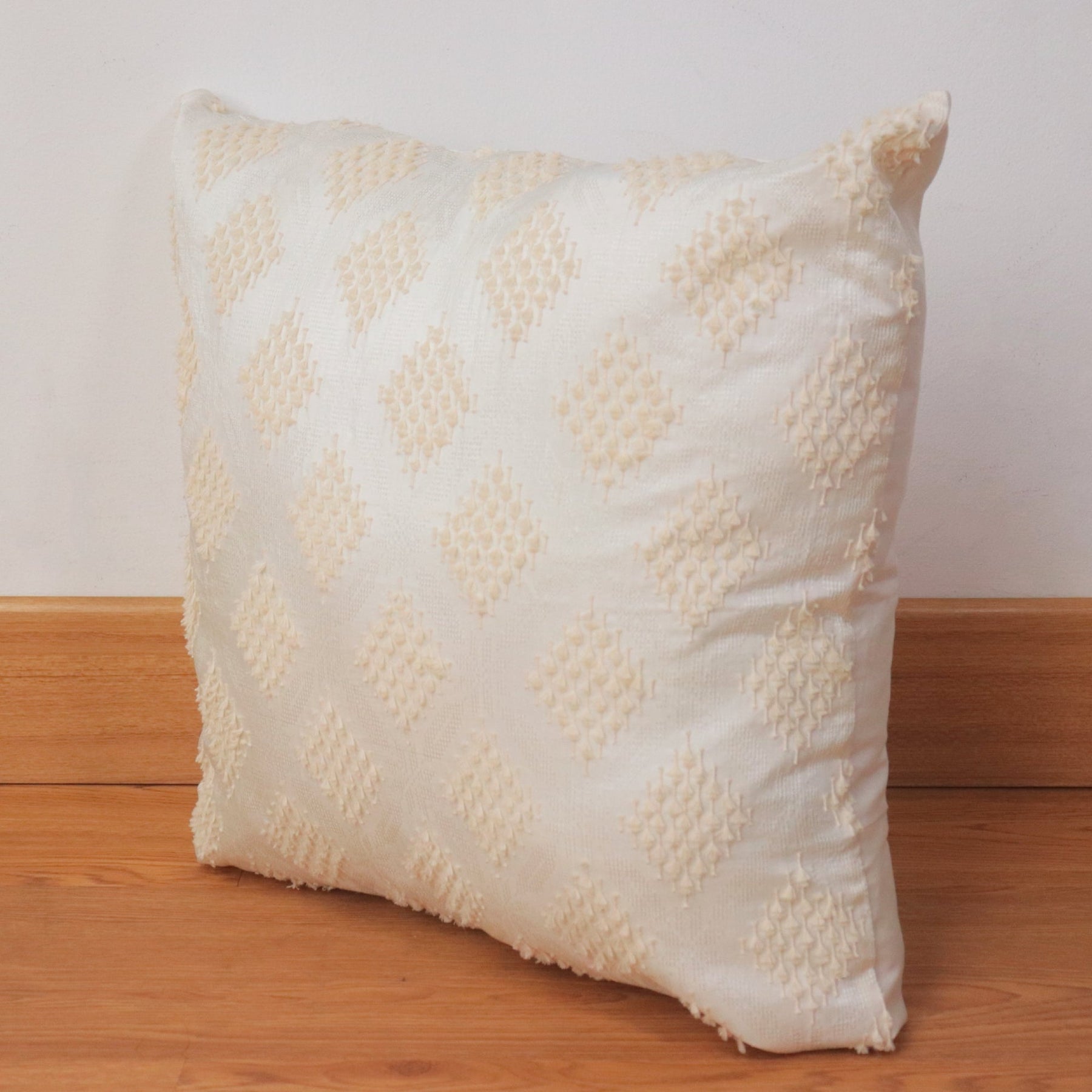 Pillow / Cushion Cover, Handwoven Ikat in Silk & Cotton, Natural Cream, Neutral, White