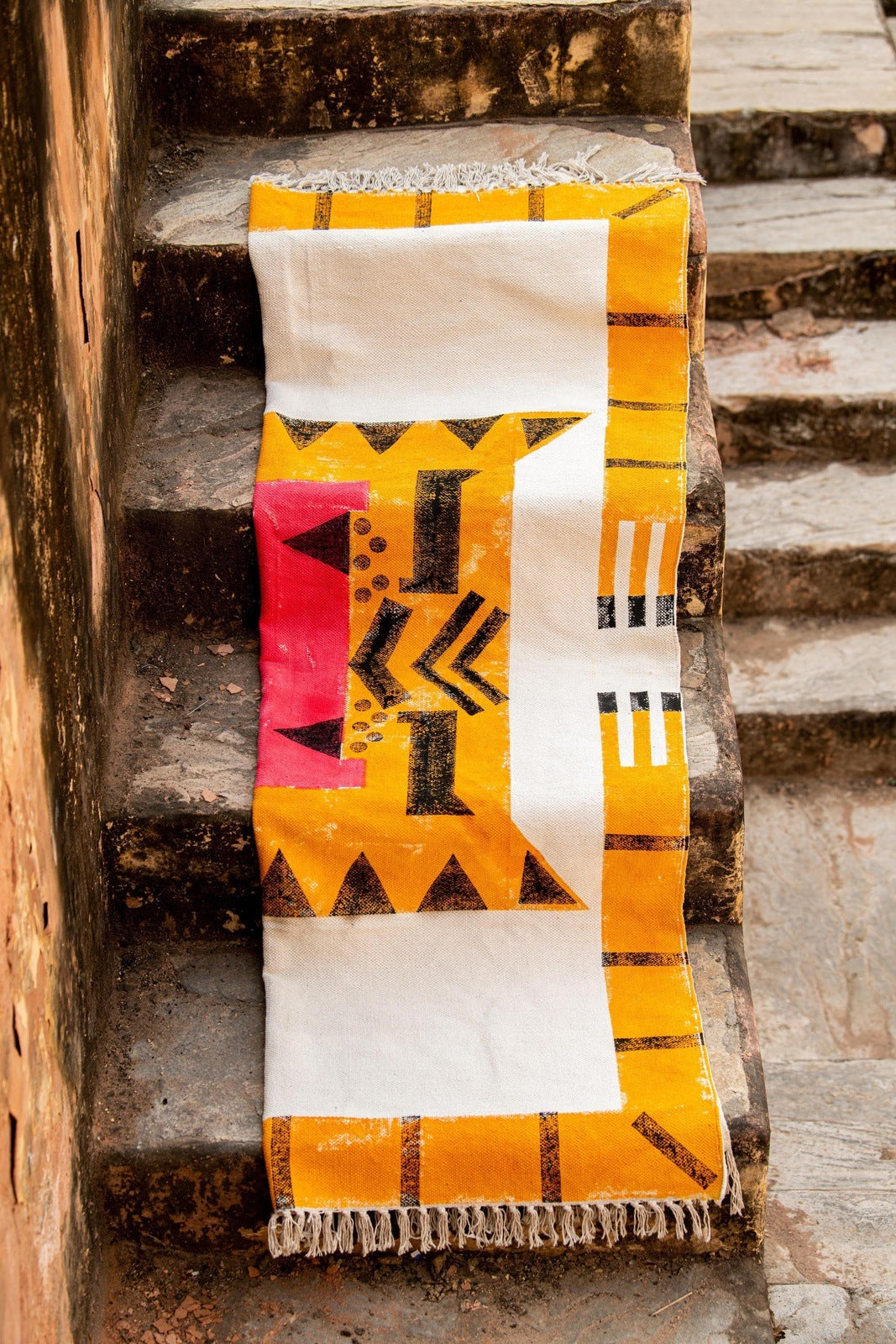 Each rug is handmade, requiring attention from 4 artisans, including wood carvers, block printers, weavers, and dye specialists. The design is hand-pressed onto each rug using hand-carved wooden blocks dipped in dyes. All rugs are made in small batches. Due to the handcrafted nature of this item, expect slight variations in the appearance of each unique piece. - 100% Cotton - Made in India - Ships from California