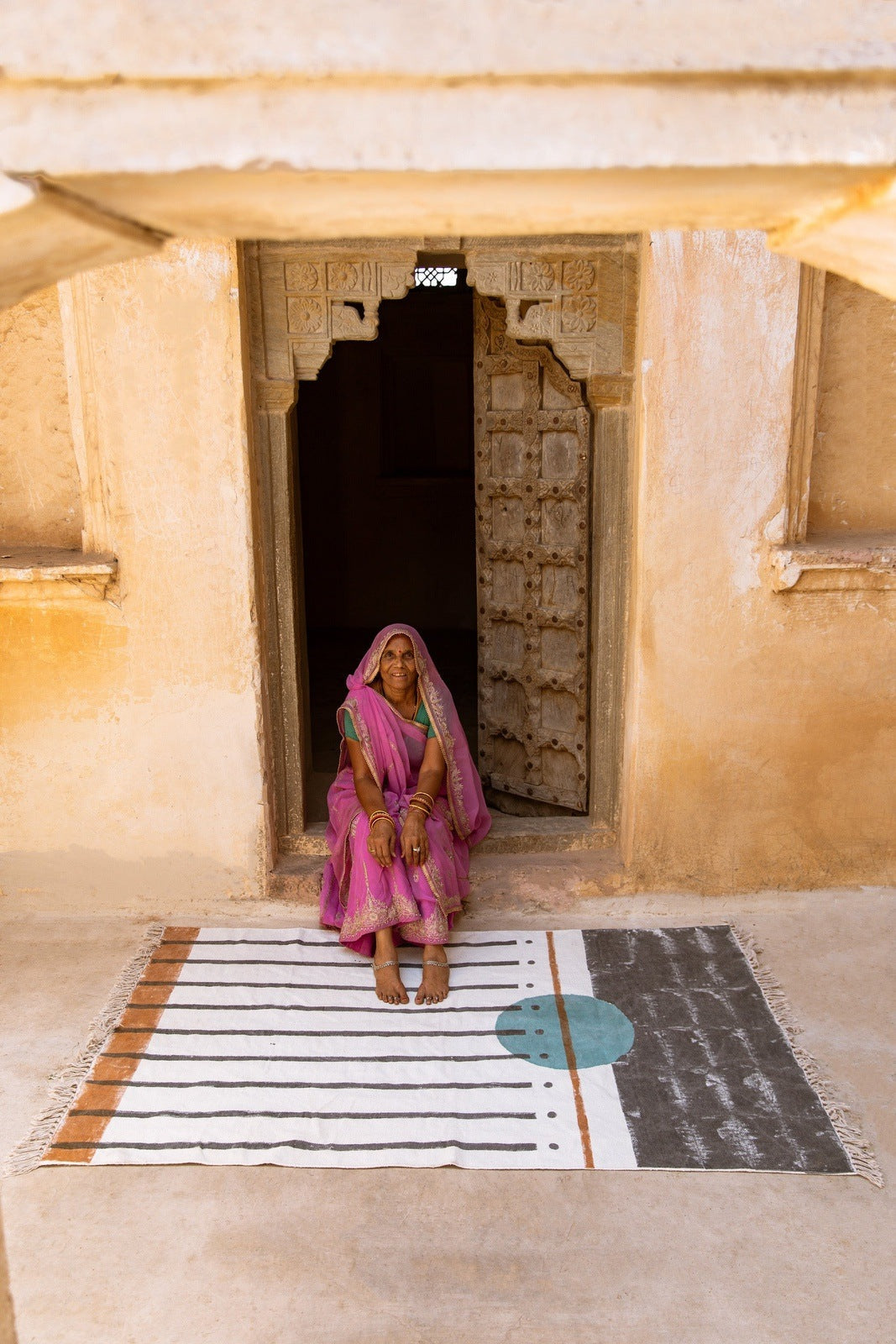 Uneven Arrows Hand Woven Wool Jute Rug In Earthy Hues