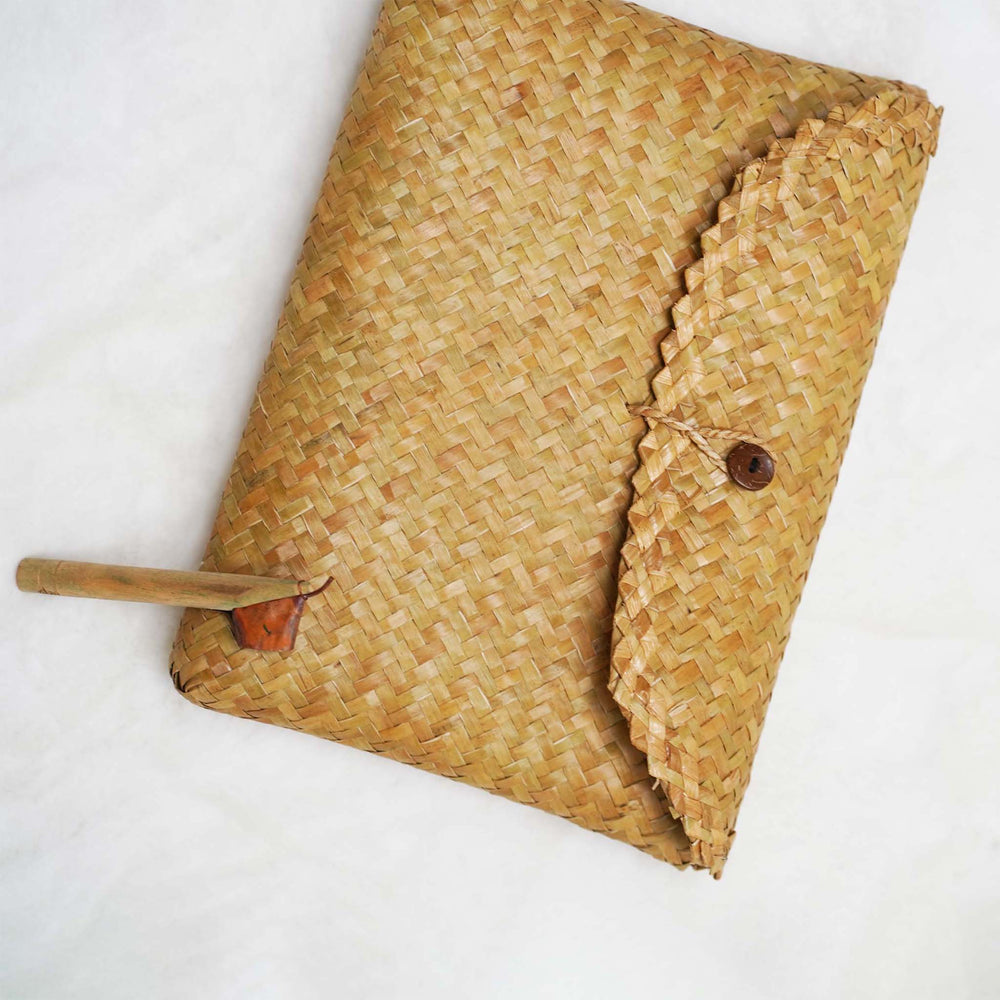 Oak Brown Stripes Cotton Wax Block Printed Zero Waste Envelope Pouch