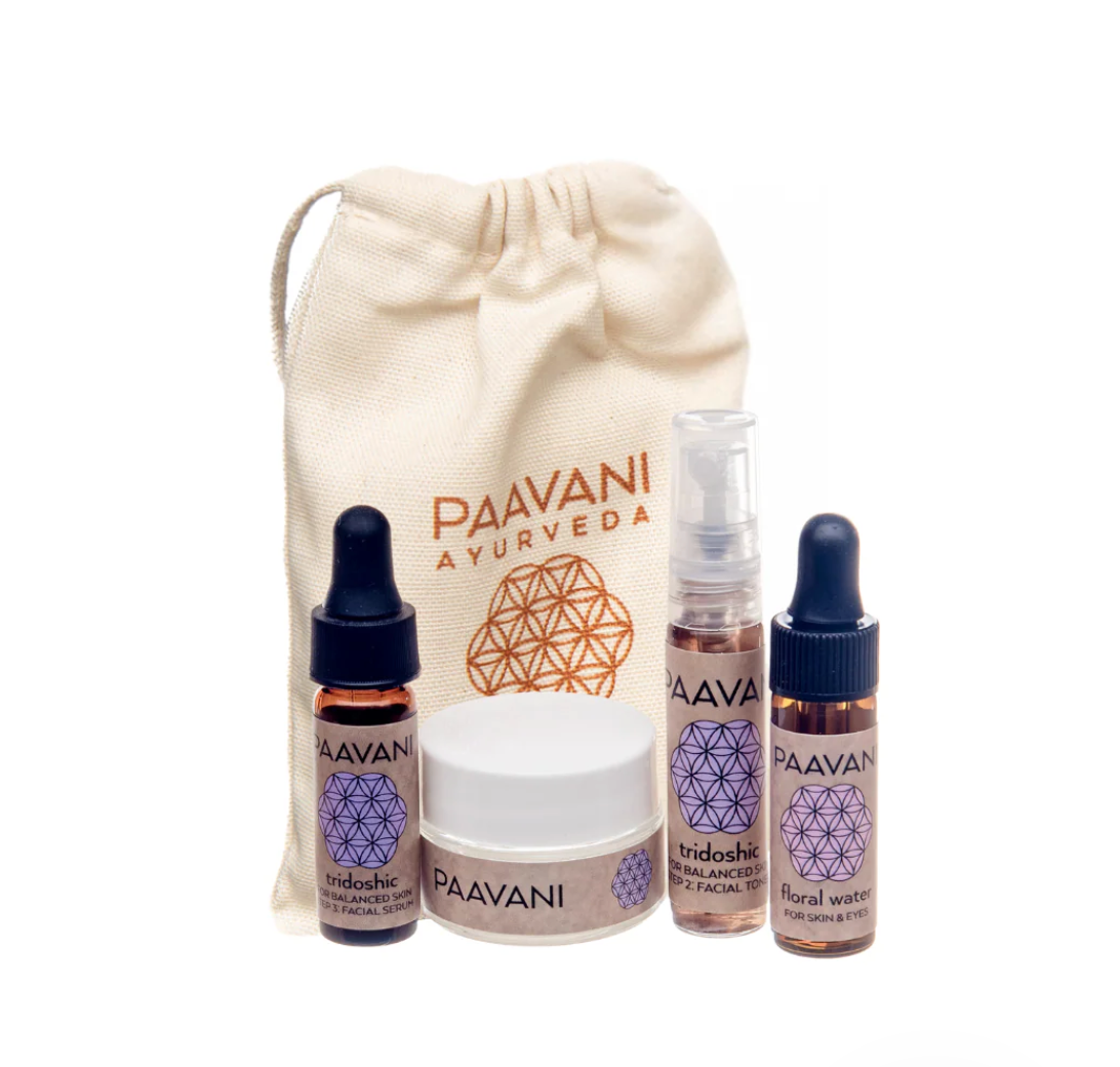 Balance & maintain normal to combination skin by incorporating the Tridoshic Skincare Ritual into your daily routine. Available in Full Size for daily use or in Mini Size to sample, gift or use during travel.