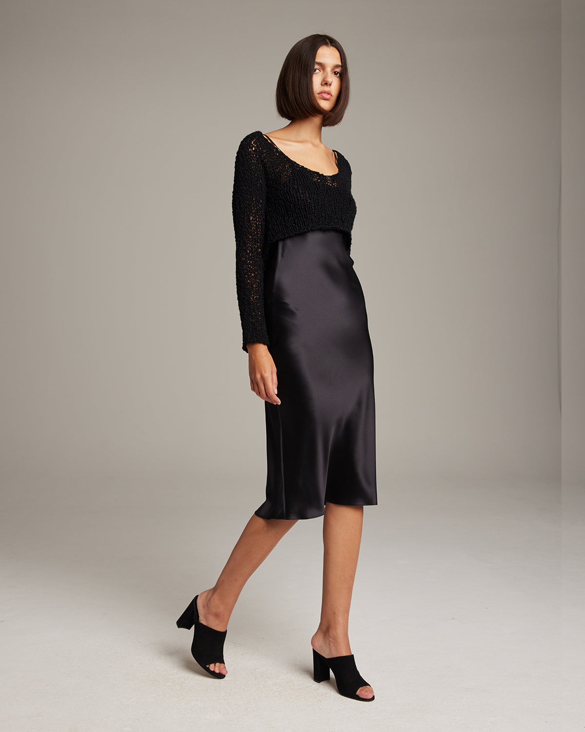 Our intricate Loose-knit Crop Sweater features an asymmetrical hemline and is made from feathery cotton for a perfect light layer. 100% Organic Cotton and Natural Dyes Knit by Mapuche artisans in Southern Chile Product Care: Dry Clean Only or Hand Wash