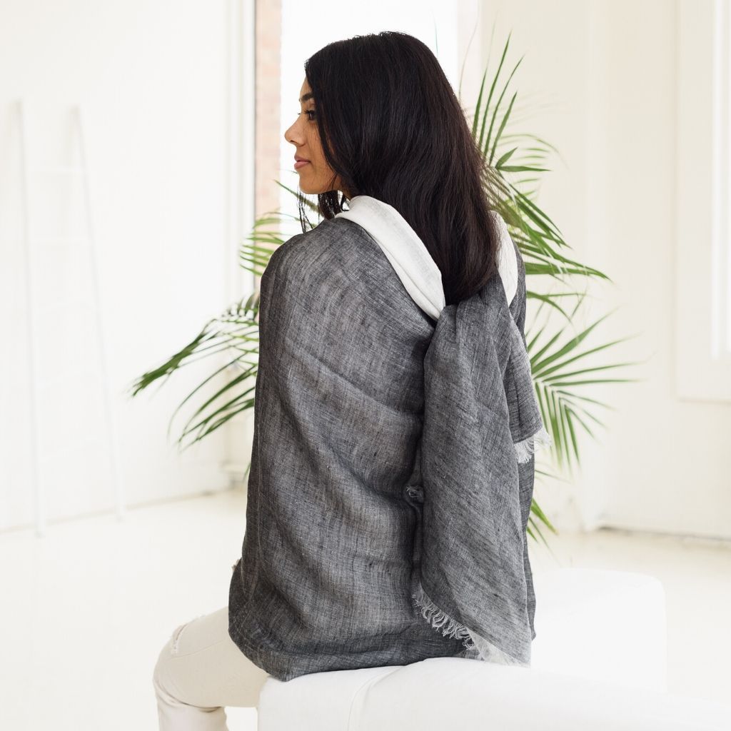 Granite Black White Ombre Linen Silk Handloom Scarf