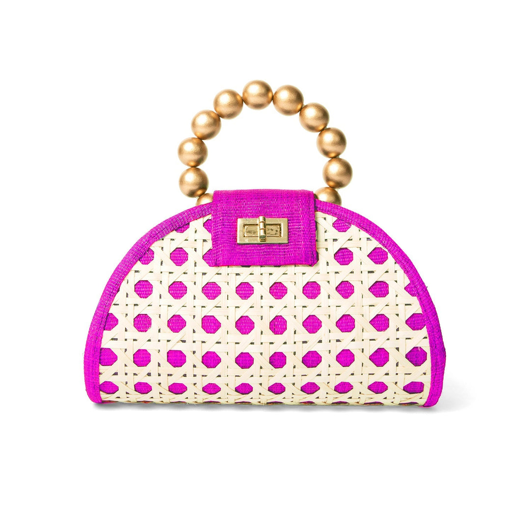 THE BELLA Pink & Gold Rattan Woven Handbag
