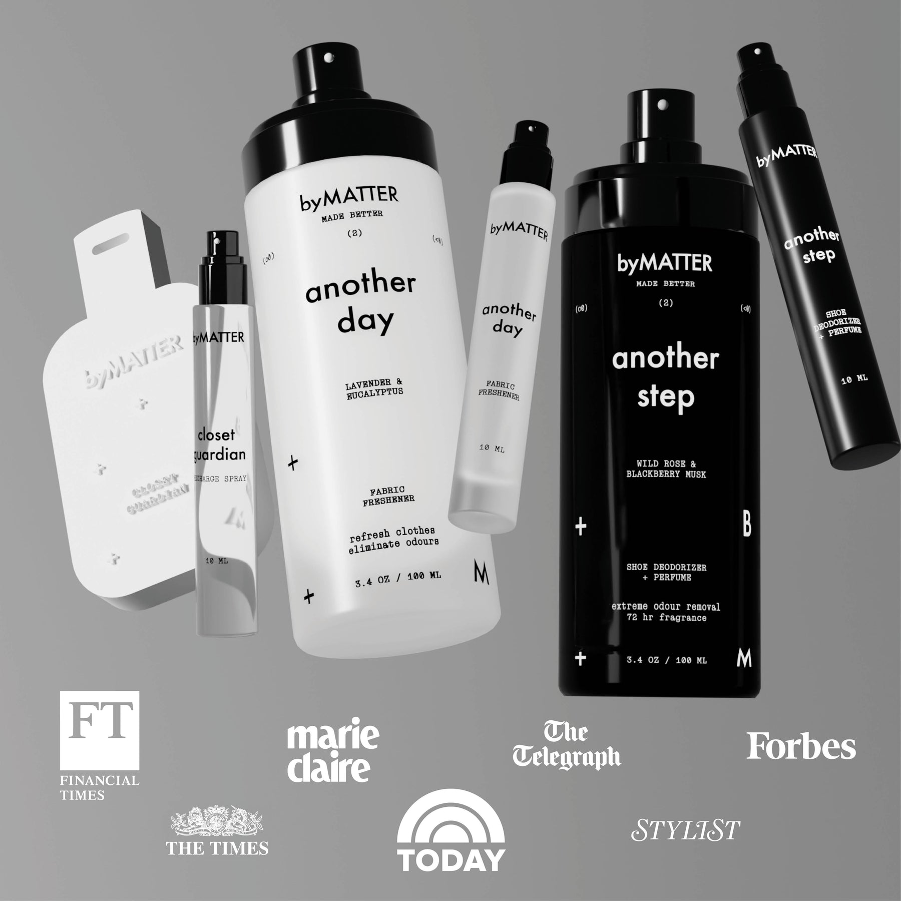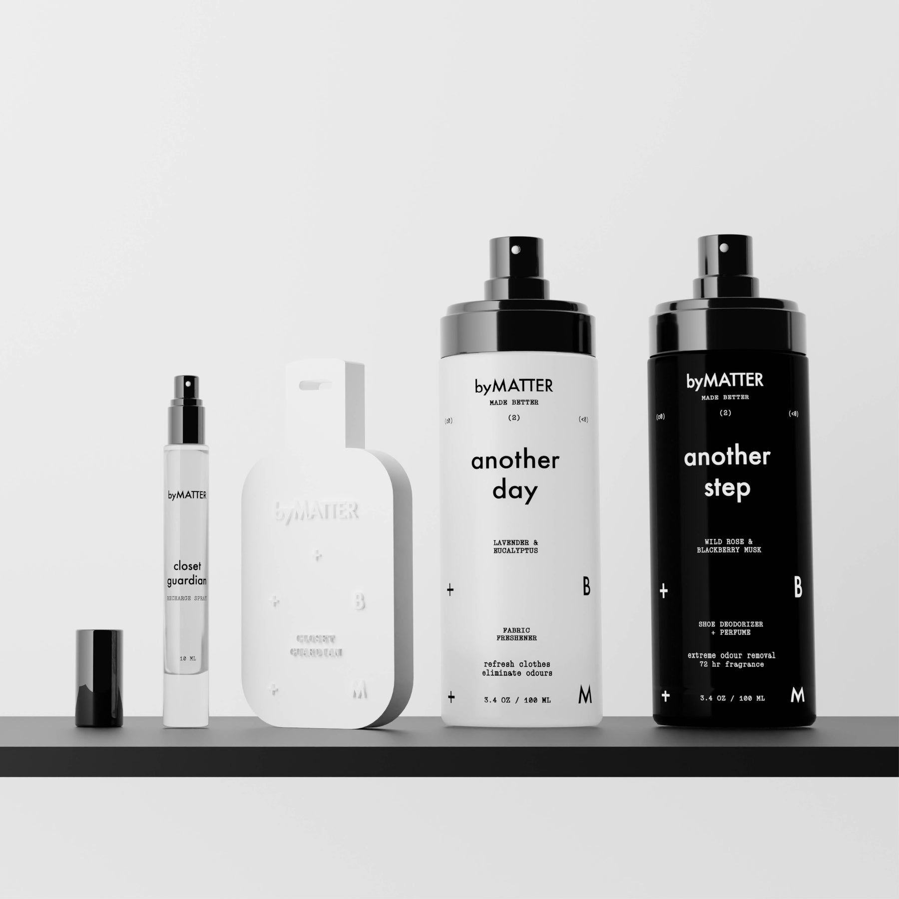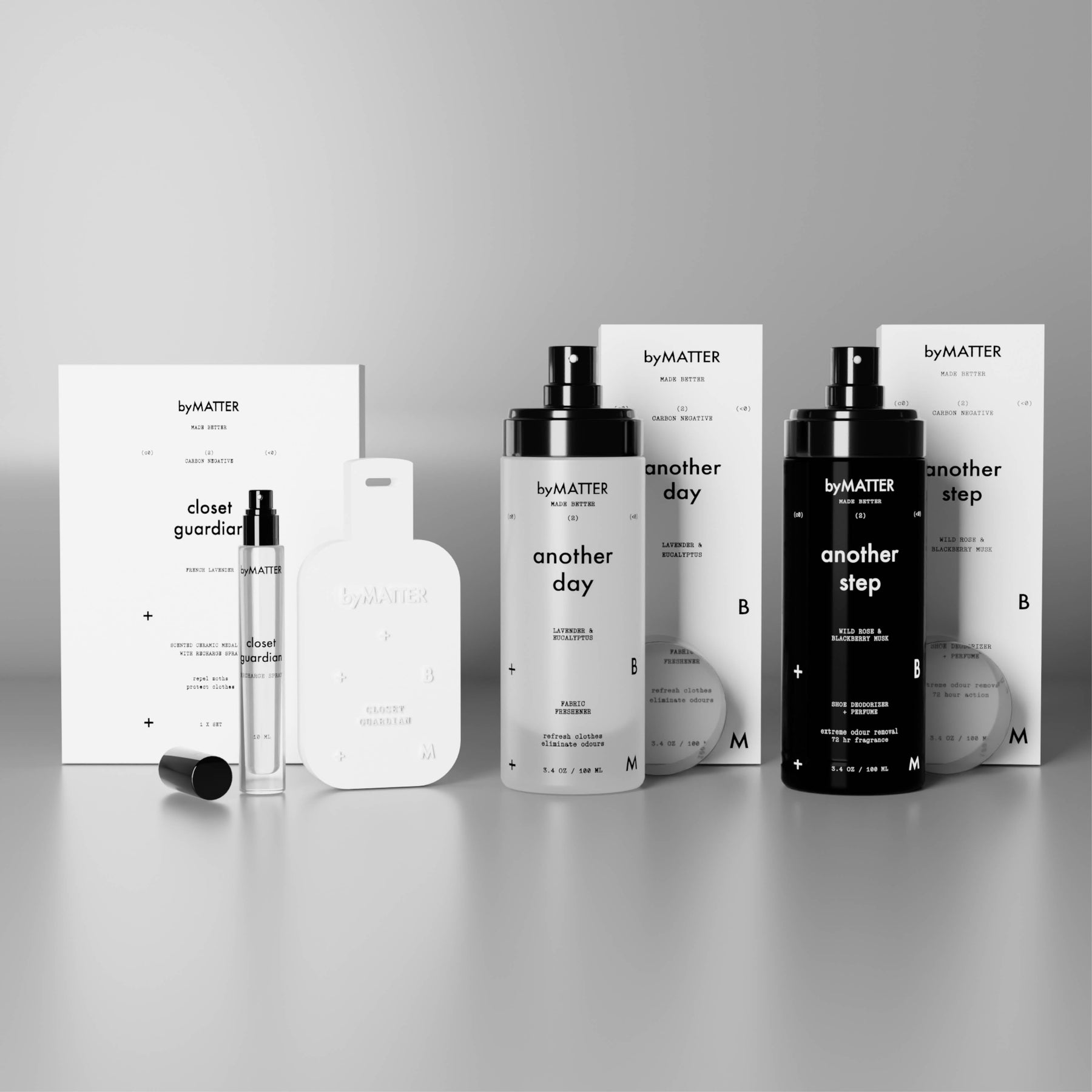 The Fresh Kit brings together byMATTER’s three bestselling essentials in one bundle. Closet Guardian keeps your wardrobe fresh and moth-free, Another Day refreshes fabrics, and Another Step removes odours from shoes while adding a sophisticated fragrance. Perfect as a gift or an instant upgrade to your home and wardrobe care.
