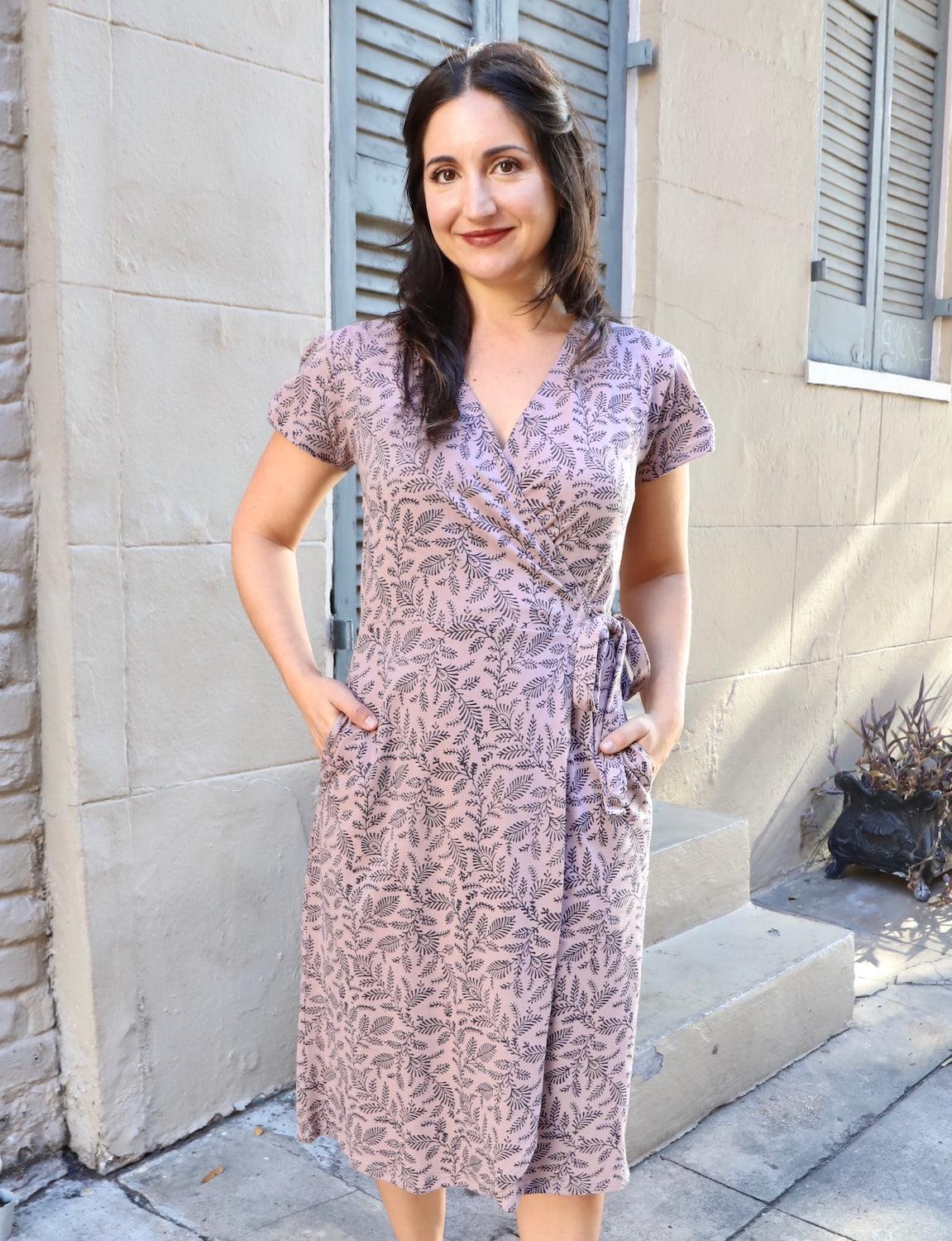 Curve friendly and flattering for all body types. Our Botanical Wrap Dress is great for nursing or pumping mothers.