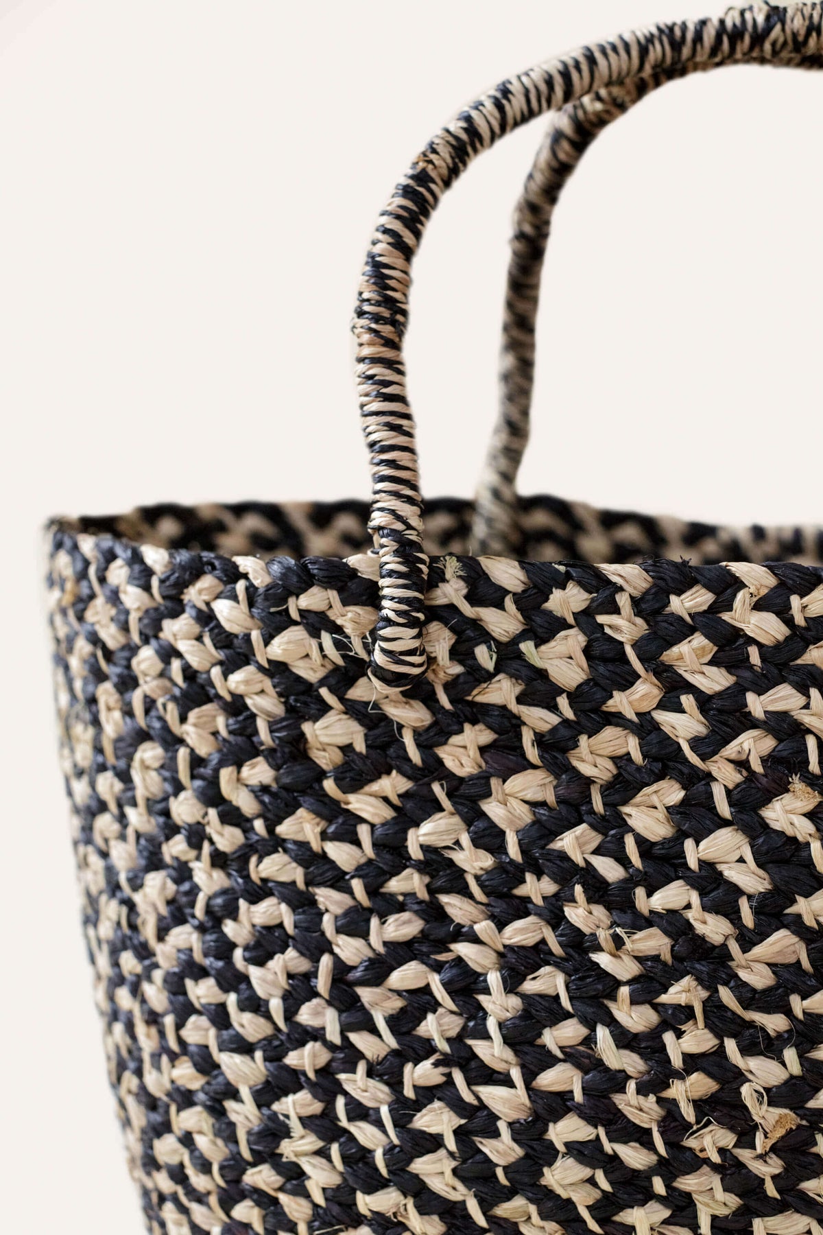 Braided Raffia Tote Black and Natural