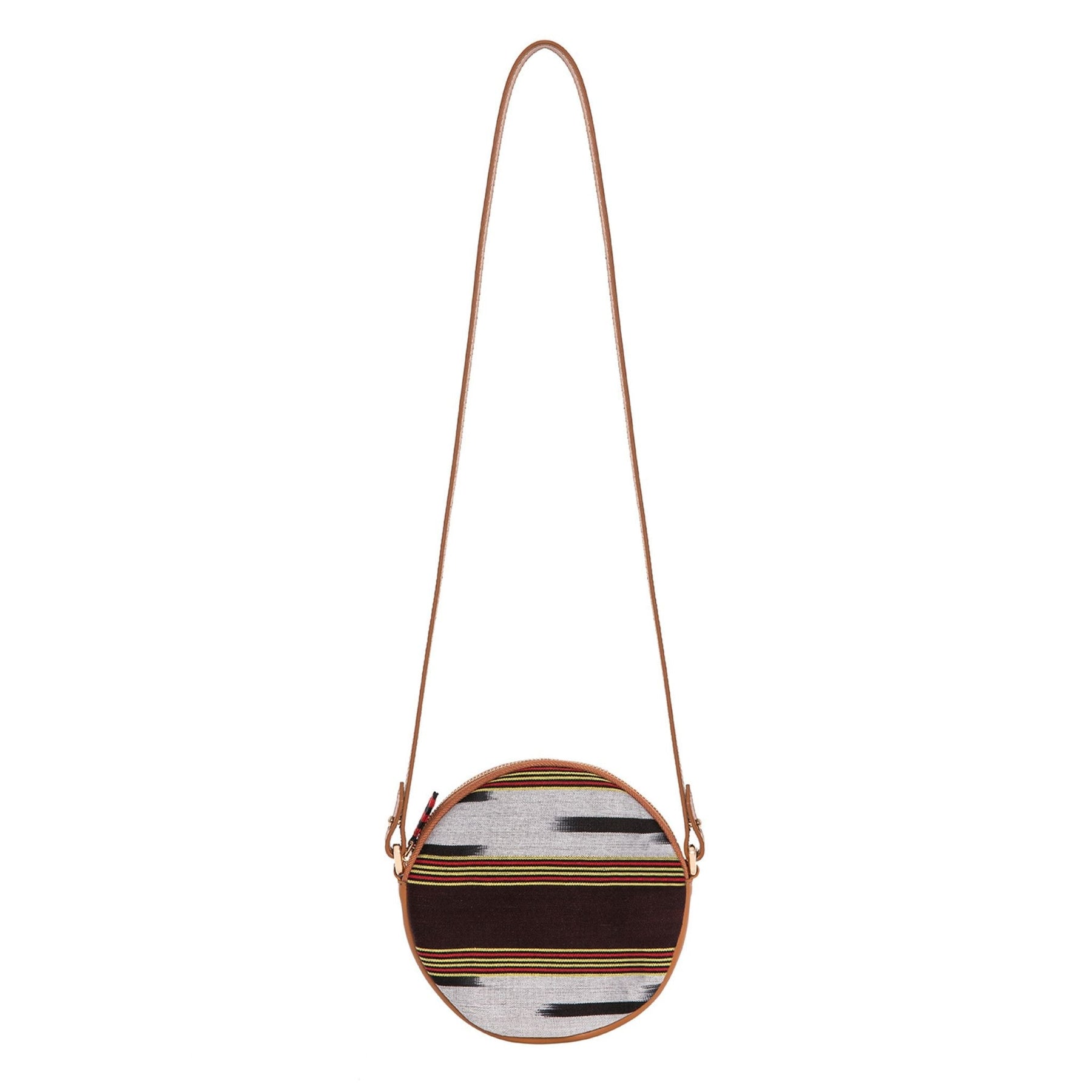 Brown Genuine Leather & Fabric Pattern Crossbody Bag