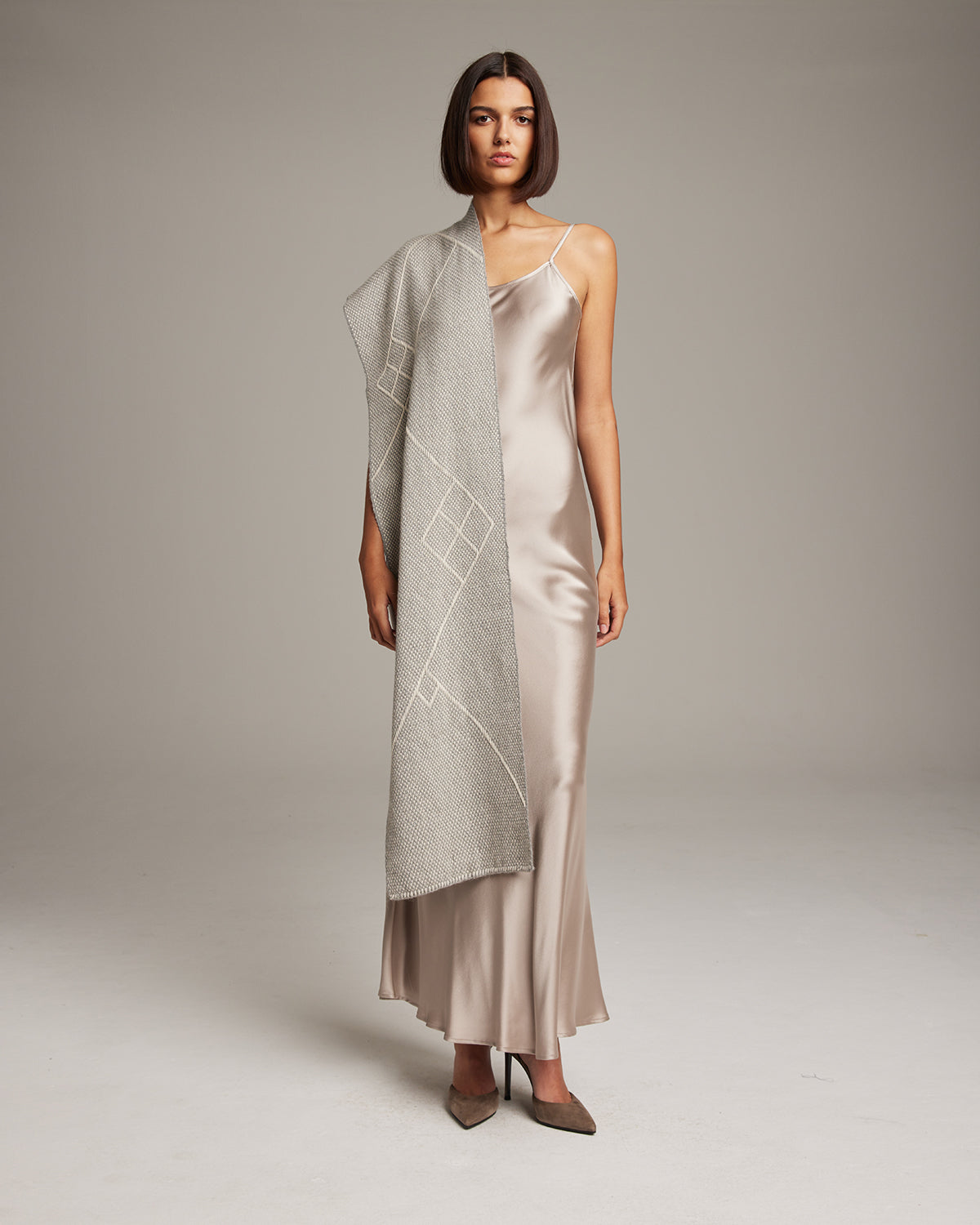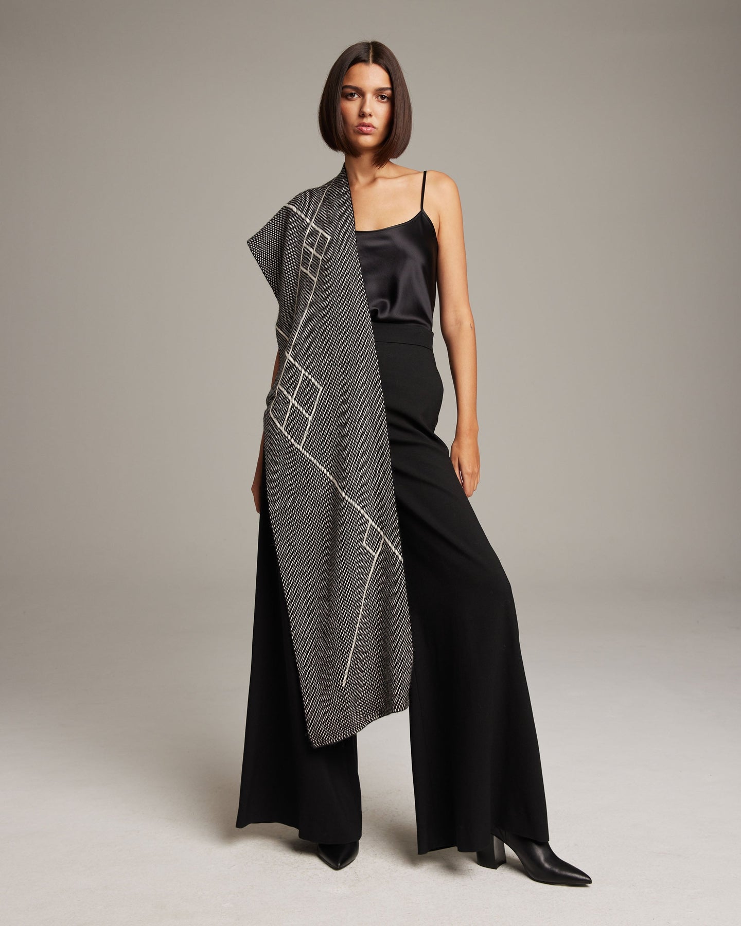 Hand-loomed scarf featuring graphic Che symbols, signifying human unity. 100% baby alpaca hand-loomed in Chile by Mapuche weavers Unisex and One Size Fits All 200cm x 70cm Product Care: Spot clean with mild cleaning agent, Dry Clean as needed