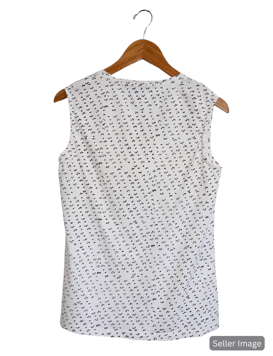 For a stylish top that can go from a day in the office to a night out with friends, our Dotted Dots Shirt is a fantastic choice. White with black splatter dots, this unique print pairs well with neutrals and colors alike for a variety of looks. It features a round neckline, has three buttons on the chest, and is sleeveless. Made of organic jersey cotton using ethical practices, this fair trade shirt looks good while doing good in the world, too.
