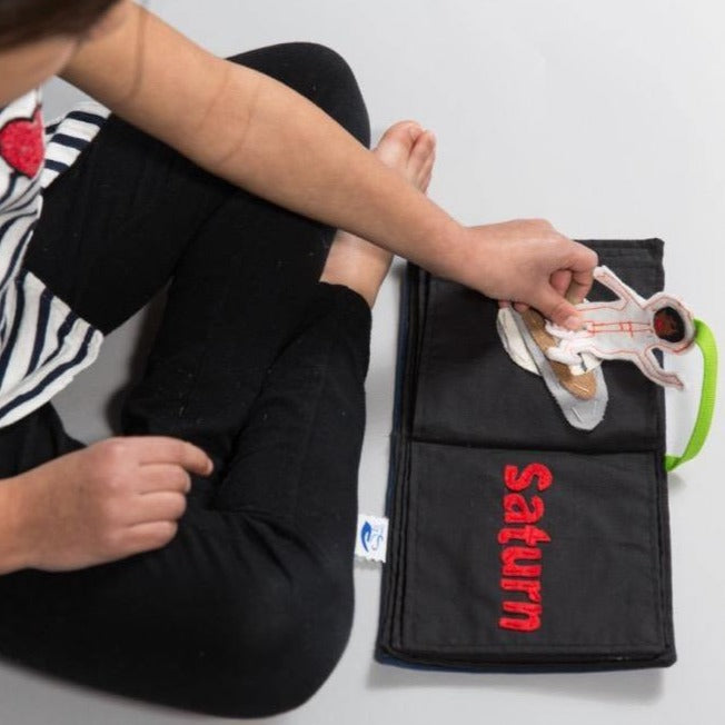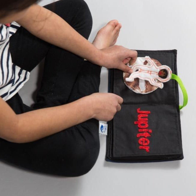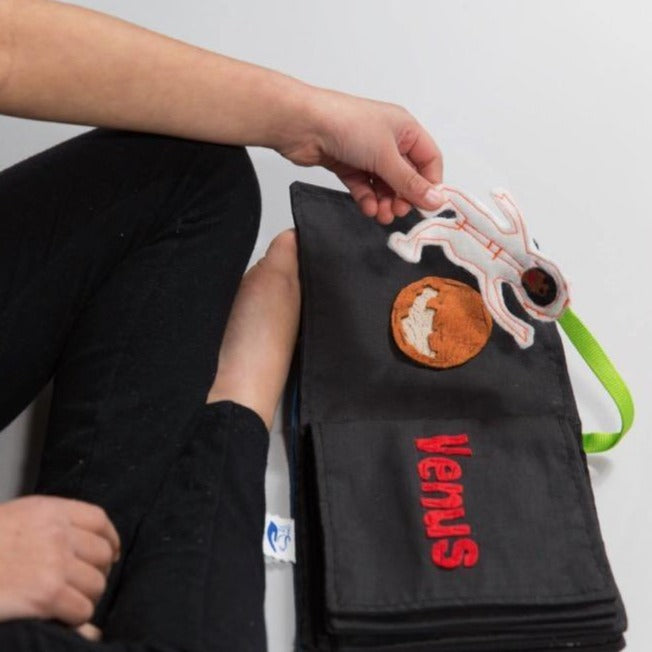 Increase your child’s awareness of their world (and beyond) with the Solar System Book! This book includes a page for each planet and an astronaut piece for play. This toy is a resource to teach children about planets and space, as well as reading and writing. Fun to play with others, or on-the-go; the Solar System Book is a versatile toy you and your child will love!