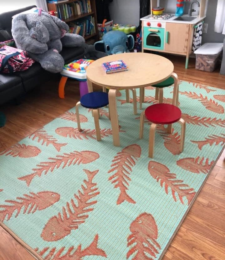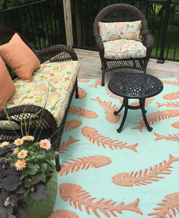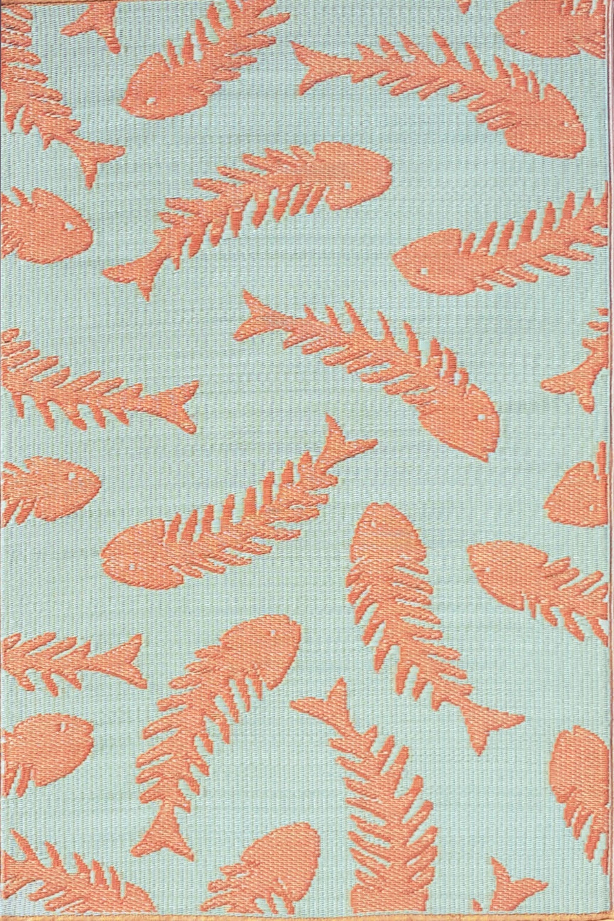 Fishbone is an interpretation of a painting by Sheryl Blackhills. Mad Mats® are made from 100% recycled plastic, are UV protected and fade-proof, and come with our one-year color guarantee. Because our rugs are handmade, pattern, color and size may vary slightly.