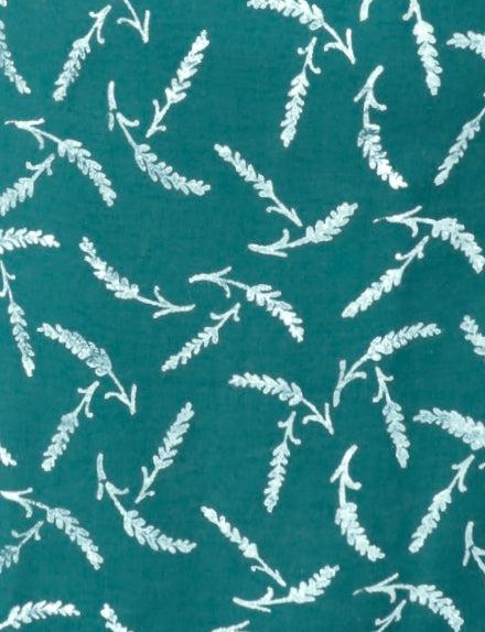 Add some color to your fall wardrobe with this green shift dress. Hand block printed with a cute fall foliage print, this organic cotton dress is an easy to wear shift dress with slight tapering at the waist and front pockets.