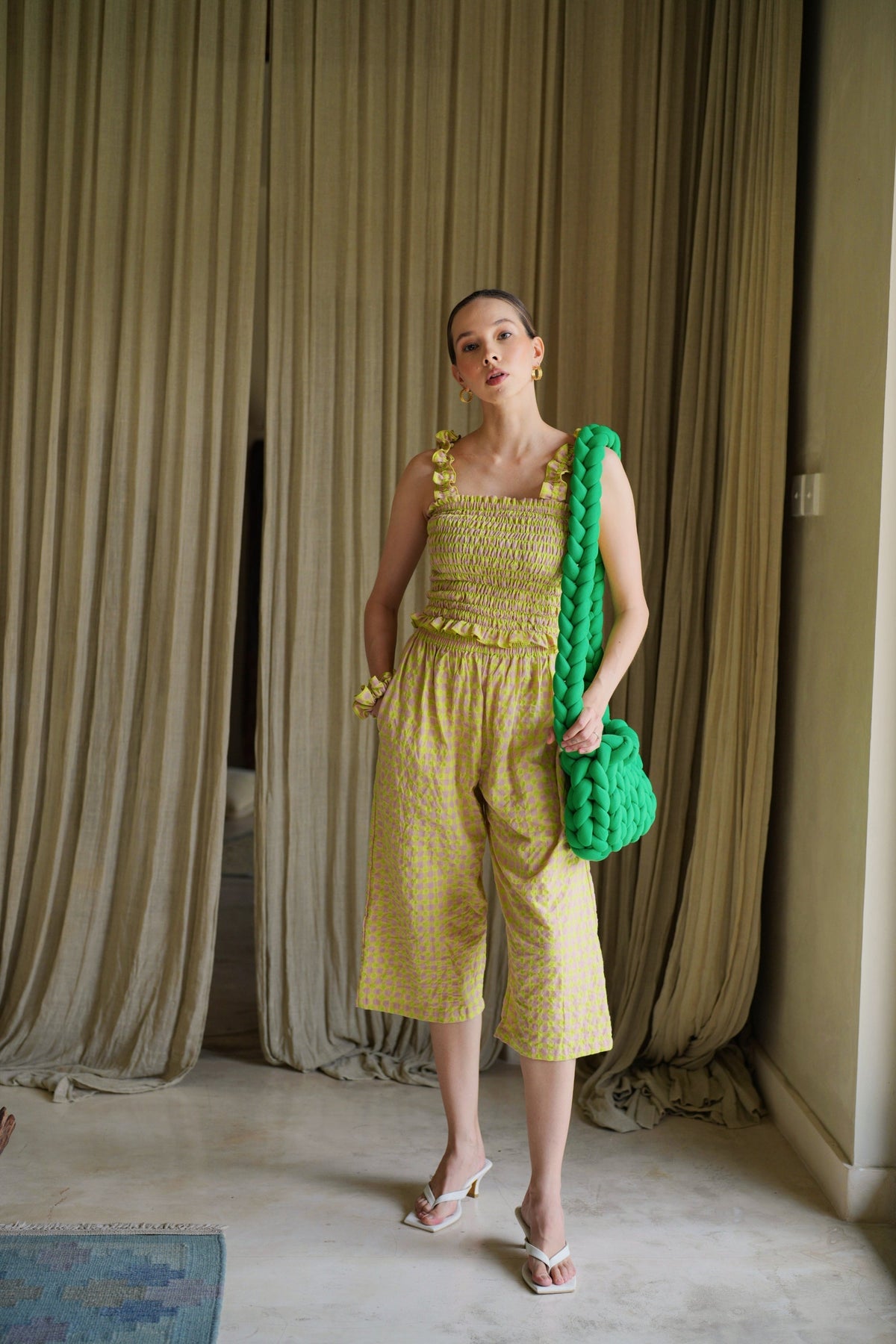 Hannah Gingham Wide Leg Crop Pants in Lemonade