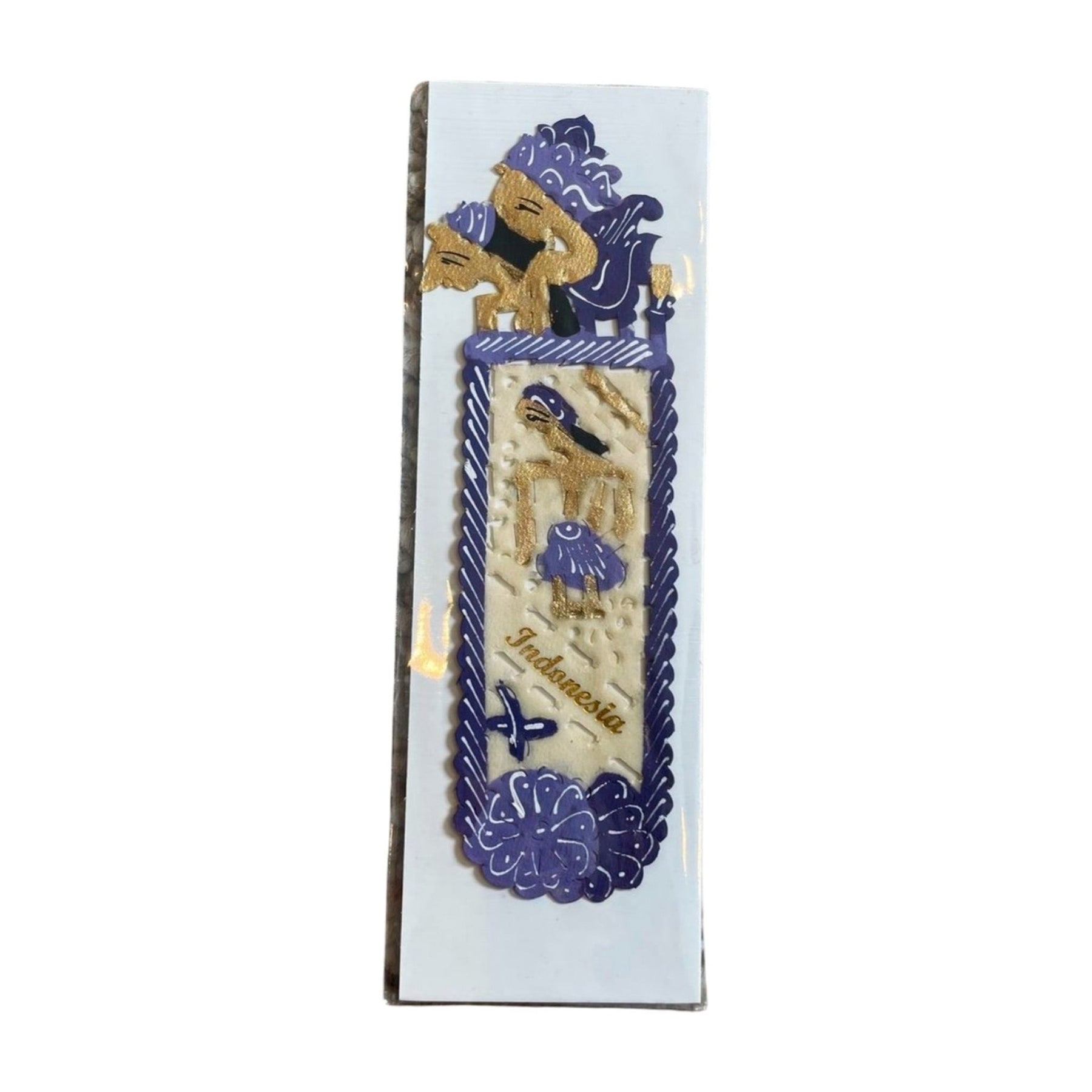 Bring a piece of Indonesia’s cultural heritage into your reading experience with this handcrafted leather shadow puppet Wayang Kulit Bookmark. Each bookmark is intricately designed to represent the traditional shadow puppets of Java, making it a unique and meaningful gift or souvenir. One bookmark; not a set of bookmarks. Material: Handcrafted Wayang Kulit (leather shadow puppet) design Dimensions: Approx. 6 x 2 inches (15.2 x 5 cm) Handmade by Indonesian artisans Lightweight and durable, perfect for everyday use A great gift or souvenir reflecting Indonesia’s cultural art Bookmark will come in a random color of our choosing Featuring text "Indonesia" in the middle of the bookmark Inspired by the ancient Javanese and Balinese shadow puppet performances, each bookmark is carefully made from leather, depicting iconic wayang characters. These performances often tell stories of the timeless battle between good and evil.