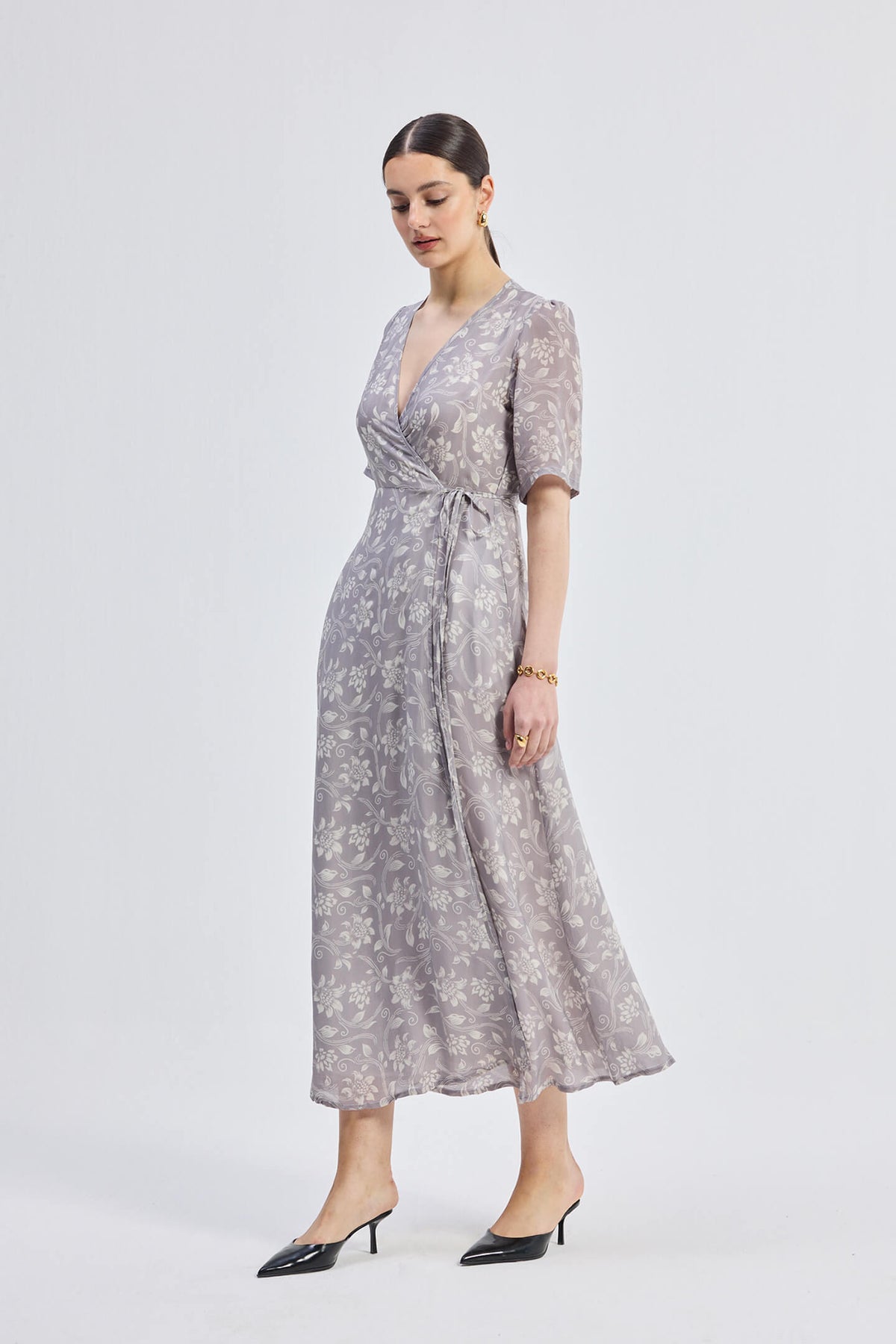This floral maxi wrap dress in flowy Bemberg™ crepe is designed with a V-neck, adjustable waist tie, and an elegant, timeless drape in a flattering silhouette. Lightweight, breathable, and versatile, it’s perfect for vacation, brunch, or even for lounging at home. Dress it up or keep it casual - your call.