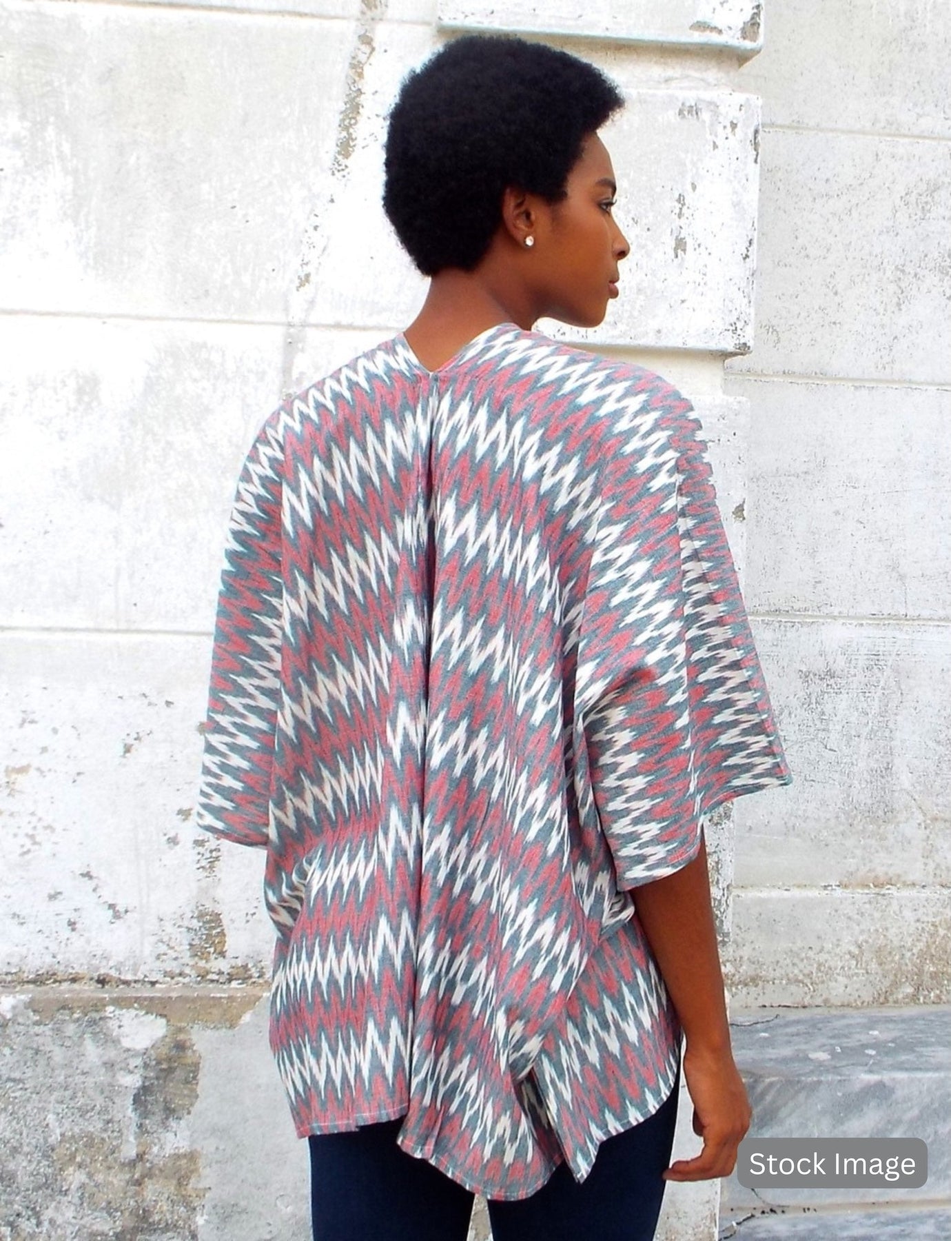 This super fun poncho can be worn open or wrapped with the detachable tie. Pair it over a white t-shirt with jeans or shorts. Made with a handwoven red, grey and white ikat fabric- this piece is super versatile. It can be also be used as a cover-up for pumping and nursing mothers.