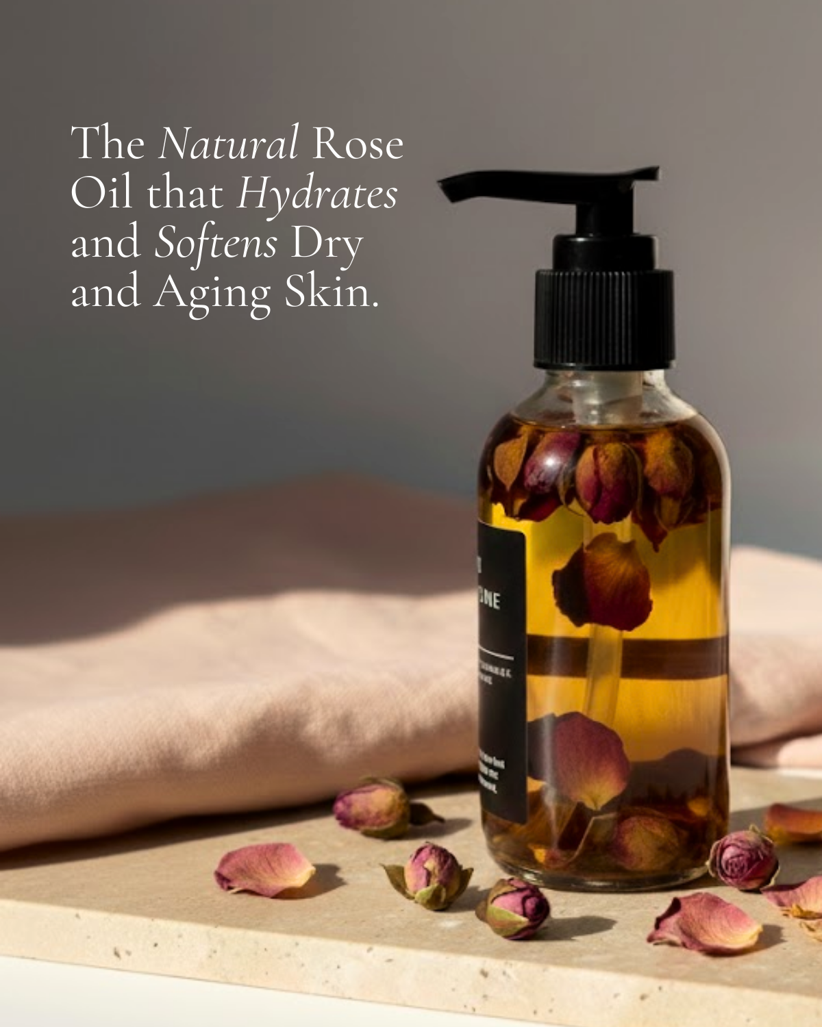 This rose-infused body oil is a simple daily ritual in a bottle. It blends organic apricot oil, rose infused olive oil, any other organic essentials, absorbing easily with no heaviness or residue. Skin feels soft, dewy, and nourished, even when it is dry, winter worn, or aging. The organic rose buds and organic rose geranium essential oils bring a soft natural fragrance straight from nature. It hydrates, soothes, brightens, and supports healthy skin. A small moment of beauty that brings calm and care into your day.