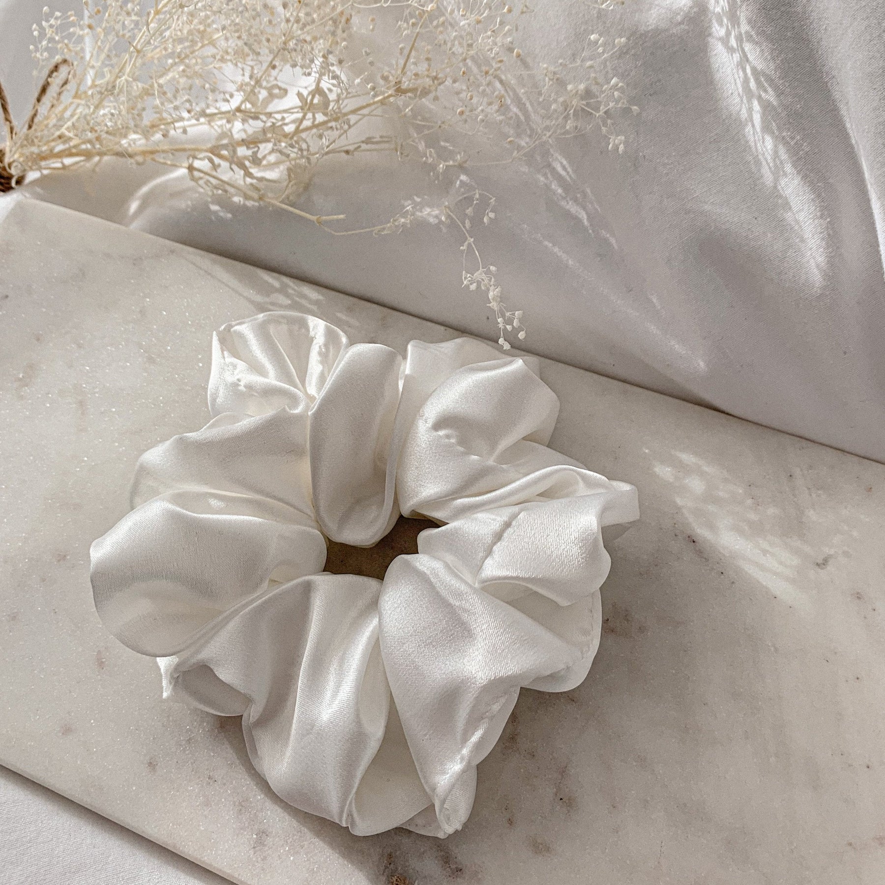 Large, super-soft satin scrunchies that will become a part of your everyday must-haves. Upgrade your top knot or pony or just wear them on your wrist. Choose from a selection of 4 colors: White, Champagne, Espresso, and Black.