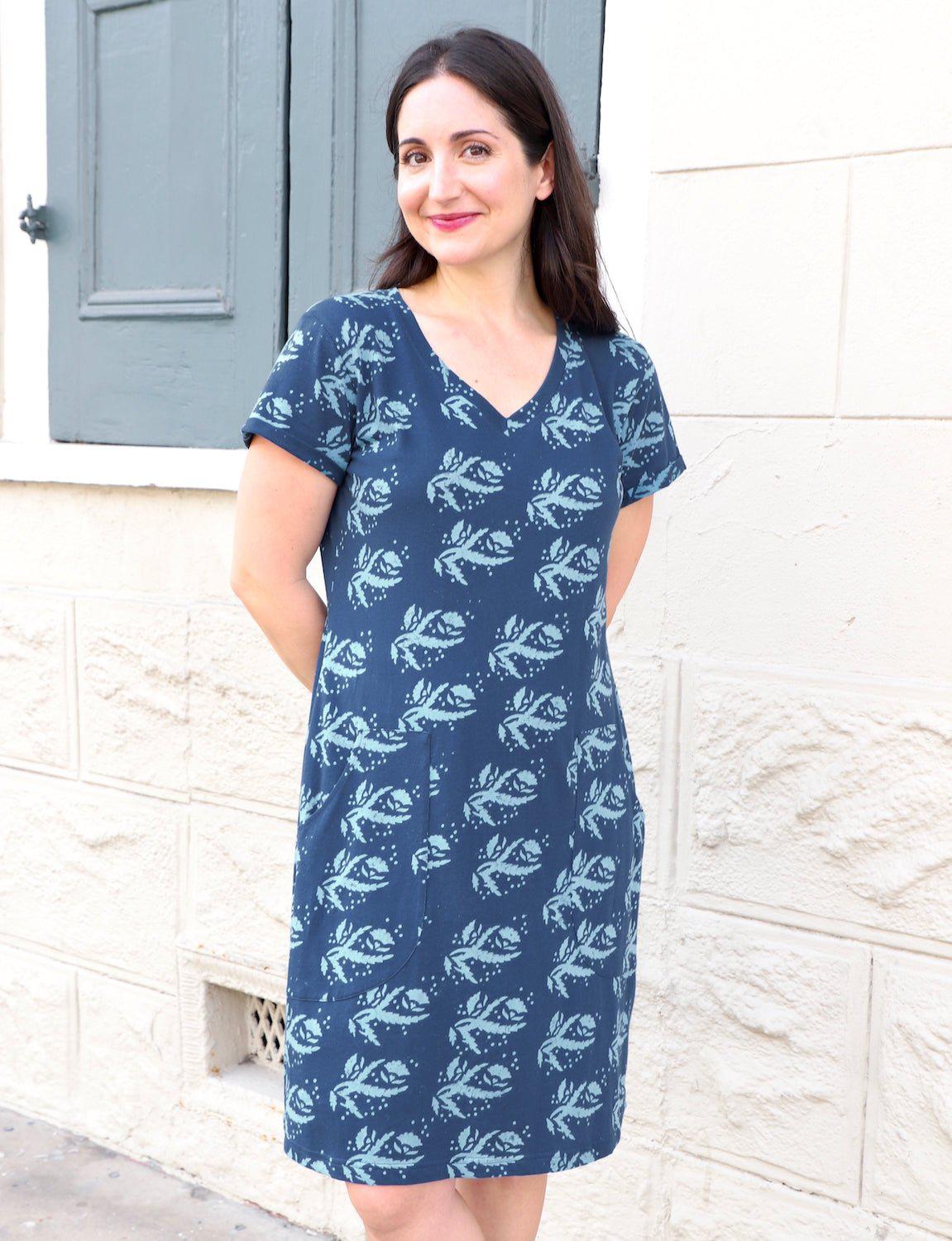 Subtle hints of the sea make this dress a stunning addition to your fall and winter wardrobe. Our royal blue dress is hand-block printed with a light blue floral design that reminds us of the ocean. Dress it up with heels and statement jewelry for a night out, or keep it casual with flats or booties for a daytime look.