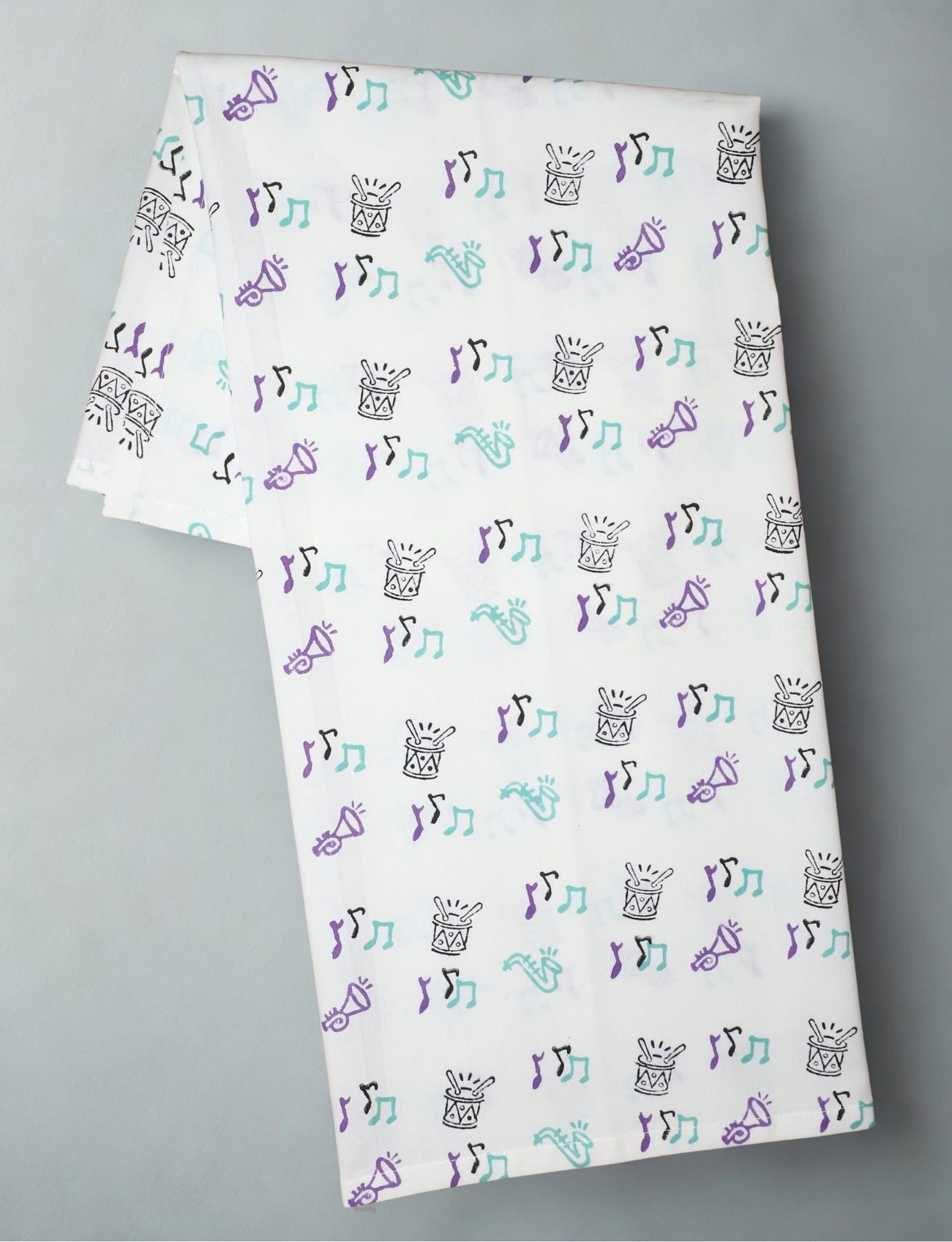 Introducing our lively addition to the home collection - the cotton hand block printed music and jazz tea towel!