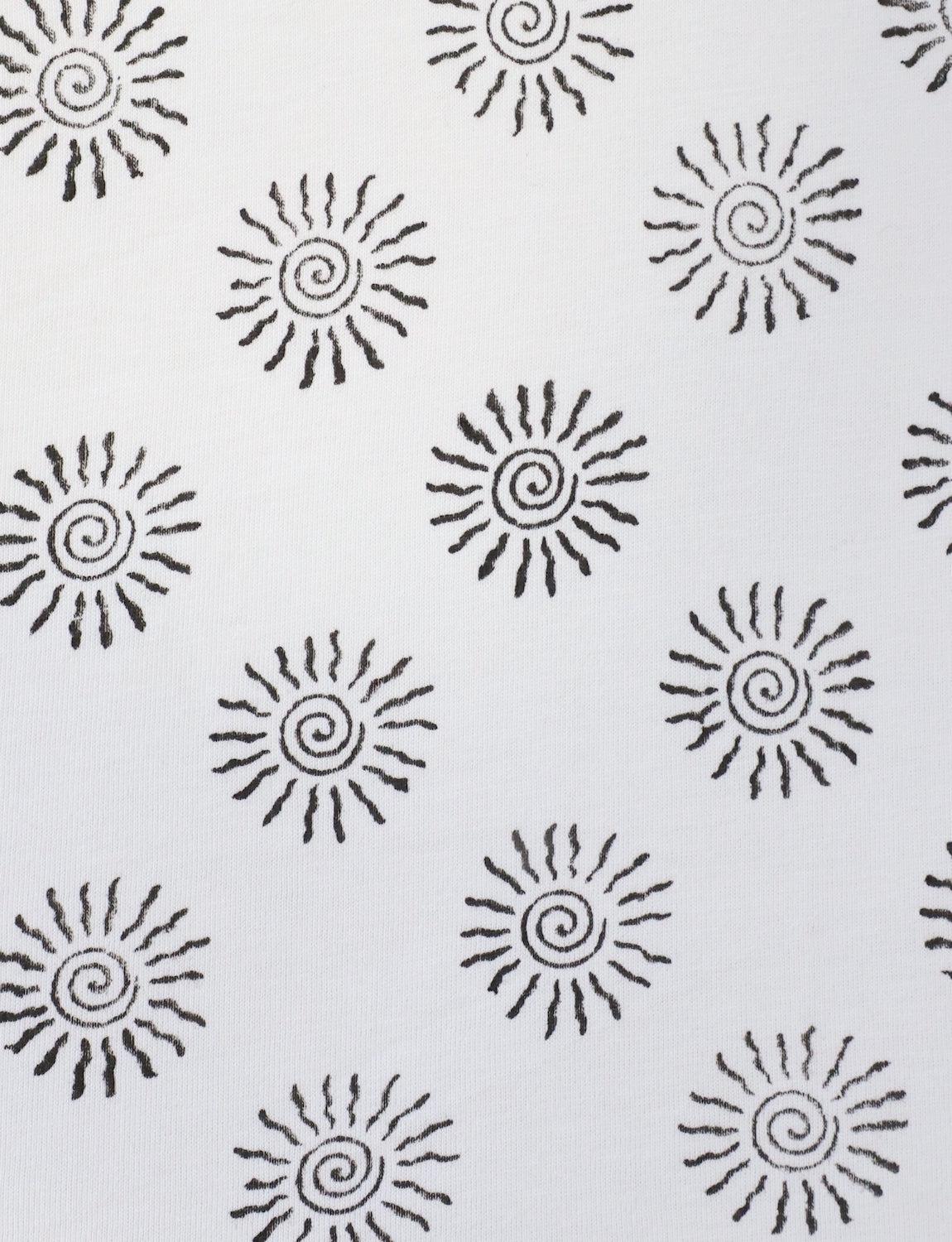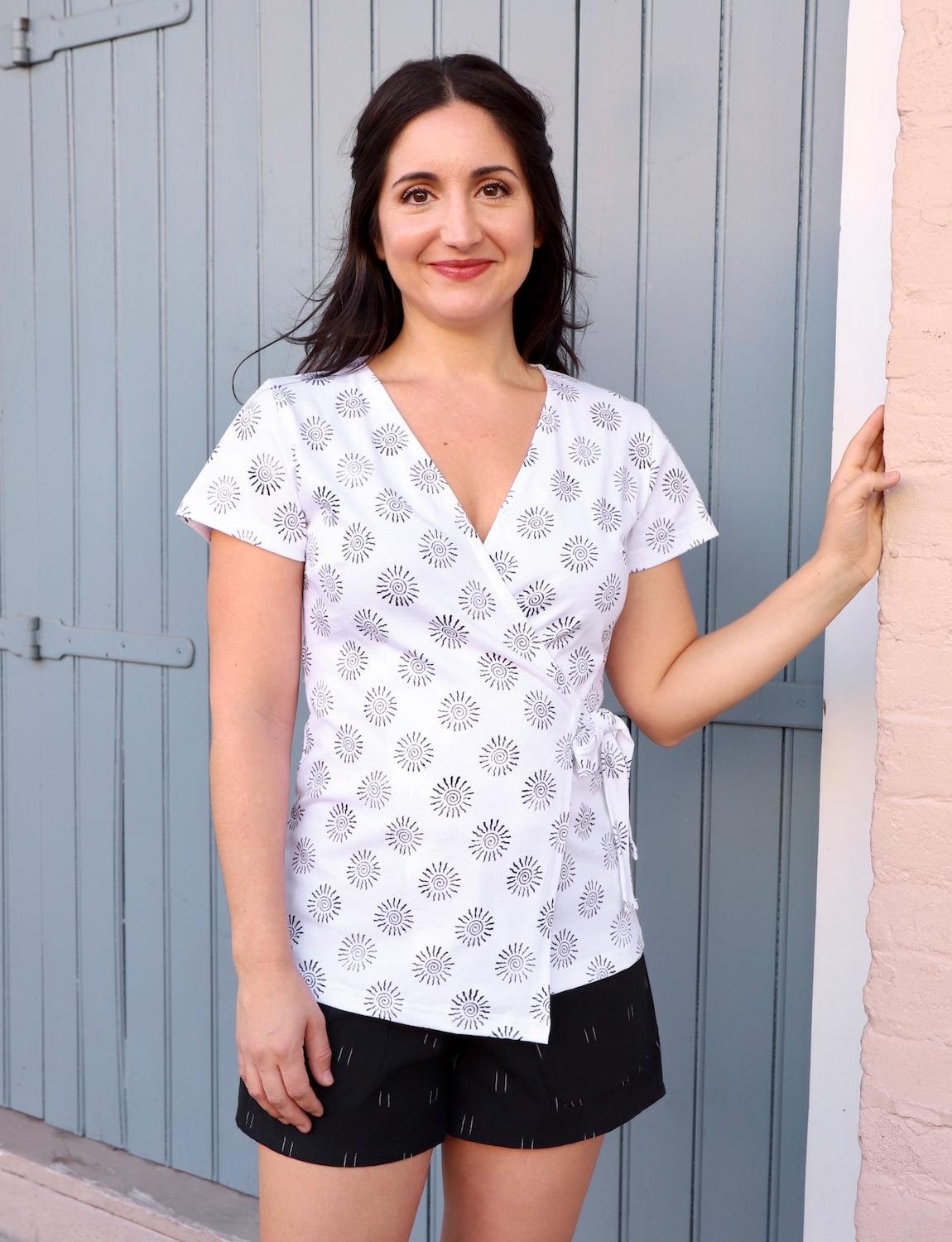 Add a little sunshine to your day with our Sol Organic Wrap Top. This whimsical hand block print is sure to bring you cheer, and our wrap top is a universally flattering style.