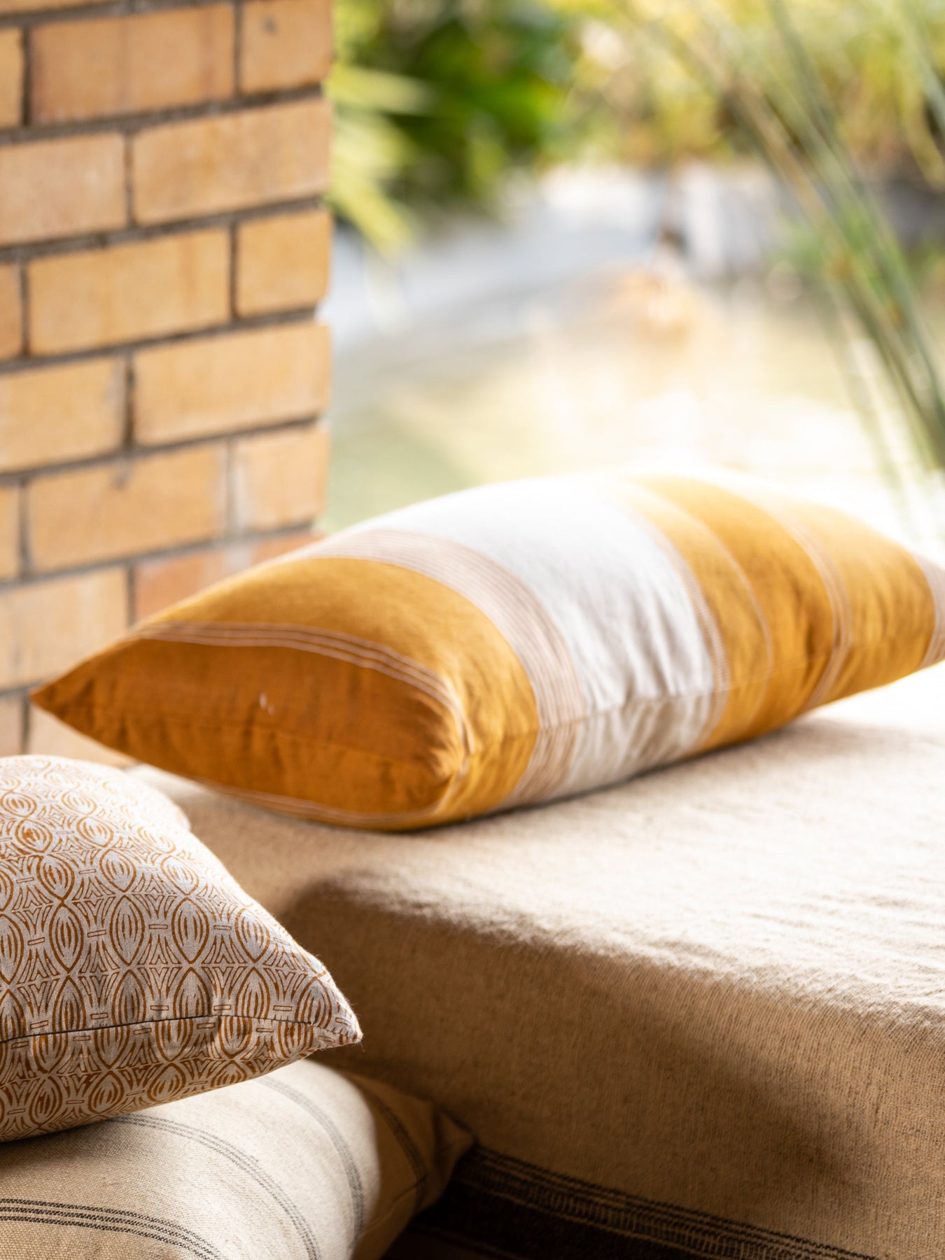 Tulum Stripe Ochre Lumbar Pillow Cover